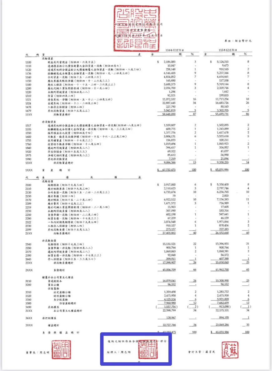 黃文泰指出,依據法規,財務報告及內部控制制度聲明書應由現任經理人簽署,但本案真正引發關注的不只是程序問題,而是更根本的疑問是現任總經理,為何沒有簽?他提出一連串質疑:是否現任總經理尚未實際掌握公司財務狀況?是否財務報告內容存在疑義,導致不願或無法簽署?是否內部控制制度之執行或評估存在問題?