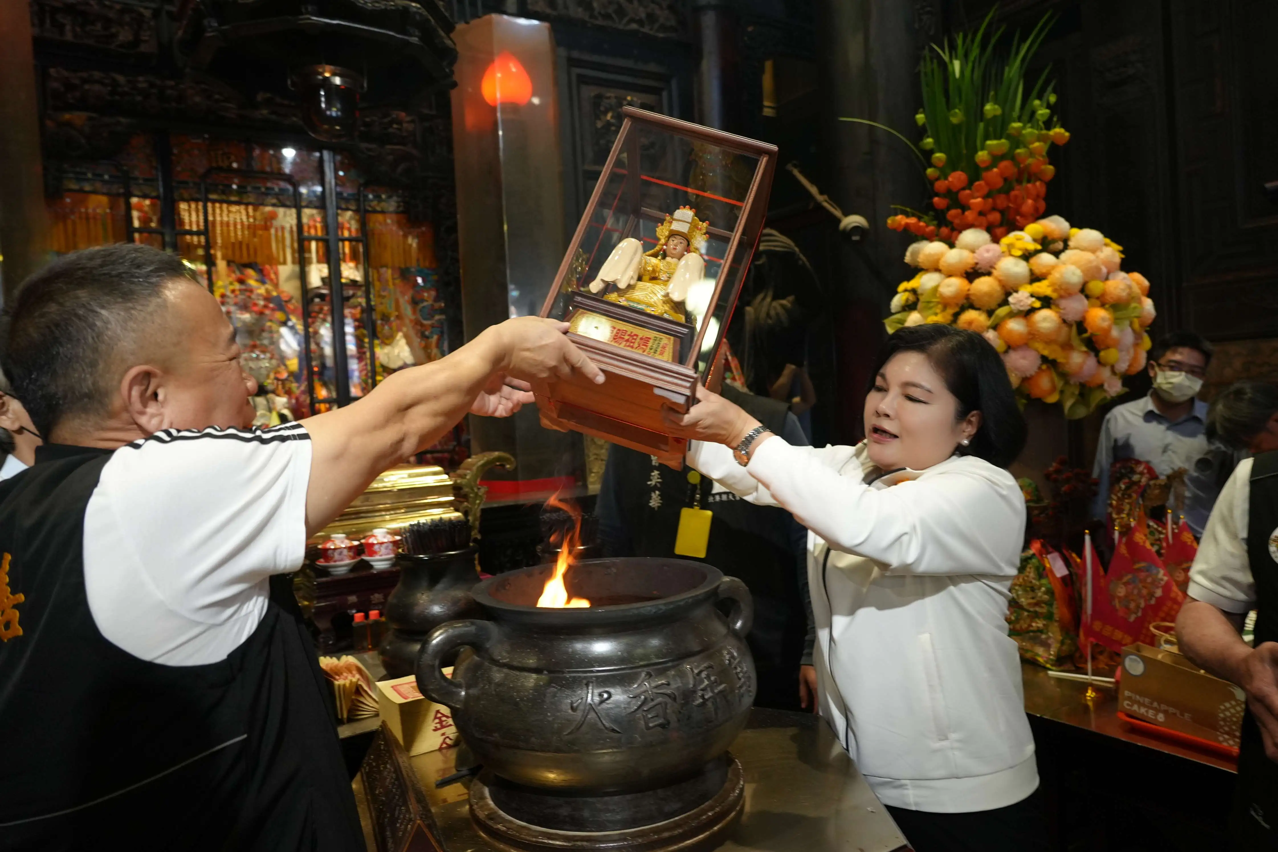 雲林至善文化協會總幹事蔡銘貴指出,為迎接媽祖進香,協會今年精心準備包括一尊白沙屯媽祖交趾陶及兩頂象徵性的粉紅超跑神轎,另準備約500顆平安抱枕,以及鑰匙圈、襪子等多元紀念品,將於進香期間與香燈腳分享媽祖祝福。