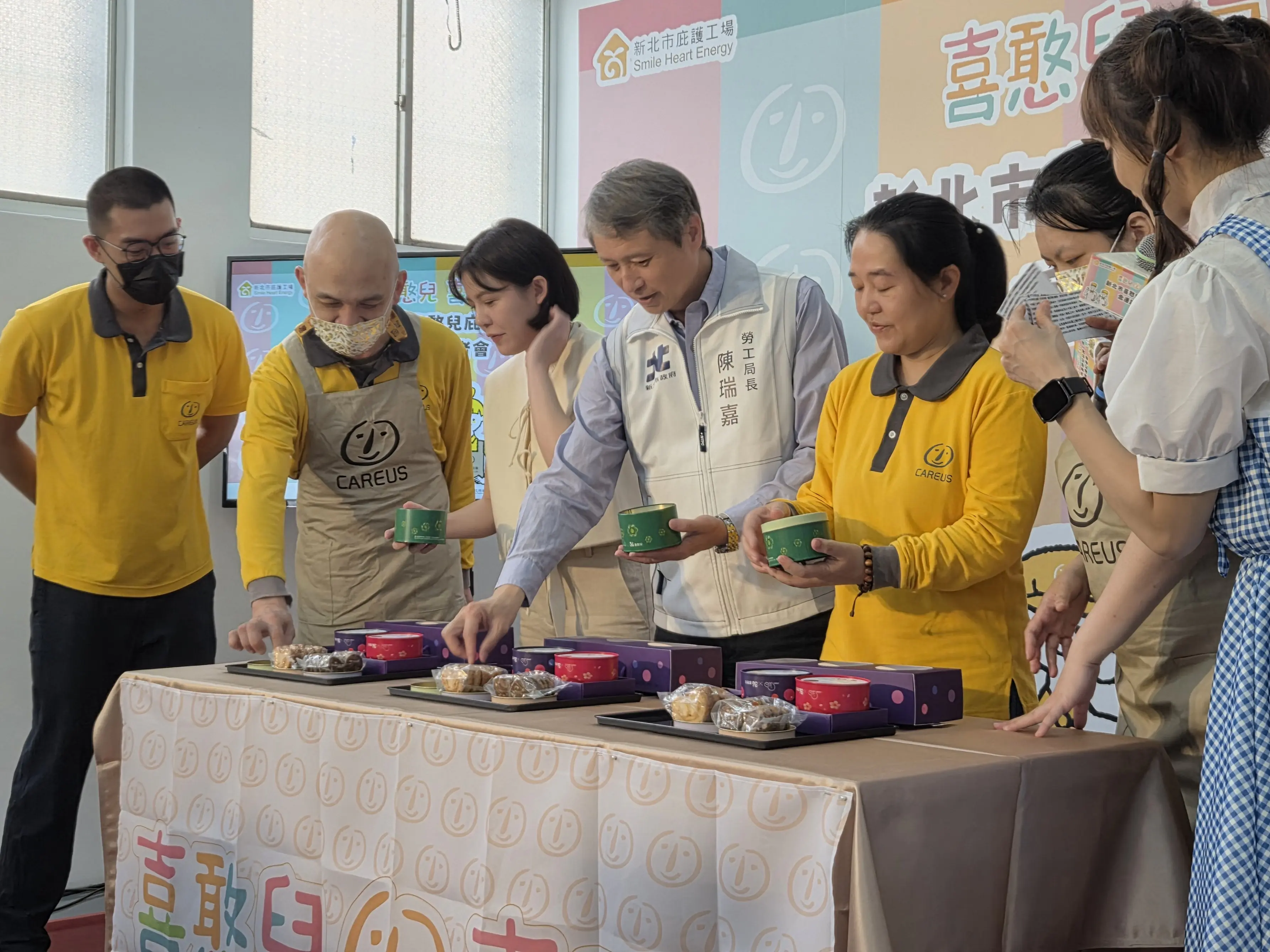 勞工局長陳瑞嘉表示,新北市設有23家庇護工場,協助身心障礙者就業,服務量能接近全國1/4。特別感謝喜憨兒基金會支持身障者就業,在新北市就設立4家庇護工場/商店,讓庇護員工透過專業訓練與實際工作,培養一技之長。陳局長特別強調,喜憨兒庇護工場生產的商品,不僅包裝精美,內容更是衛生又健康,祝福庇護工場從中和搬遷至新莊能夠「業績頭前」。
