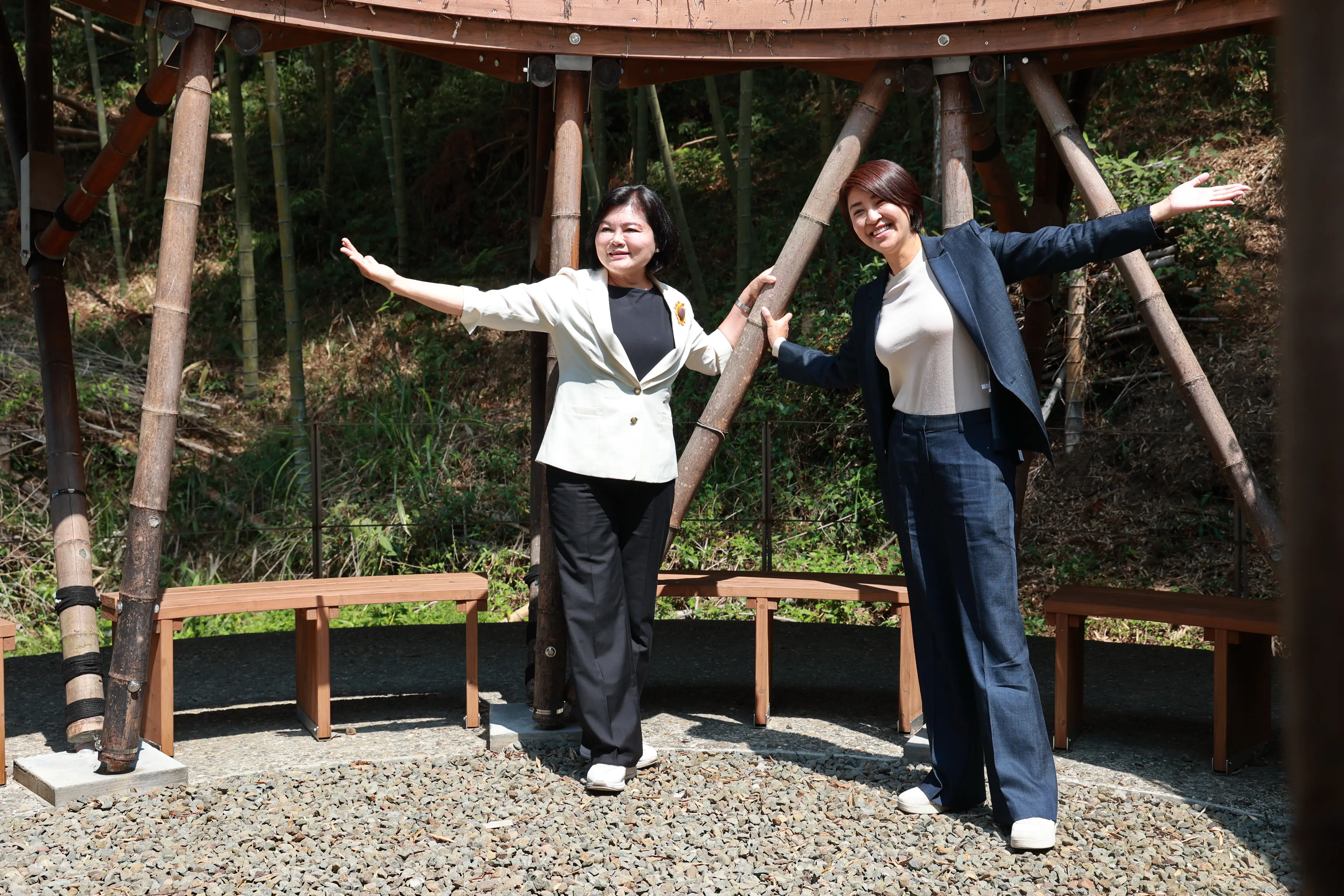 兩位縣長強調,草嶺石壁擁有絕美竹林、茶園與山林景觀,與南投竹山瑞龍瀑布、天梯等太極美地自然對接,未來將打破行政區界,整合竹海、茶園與森林芬多精體驗,推出低碳環狀旅遊路網,吸引國內外高端旅客前來「無藥而癒」。