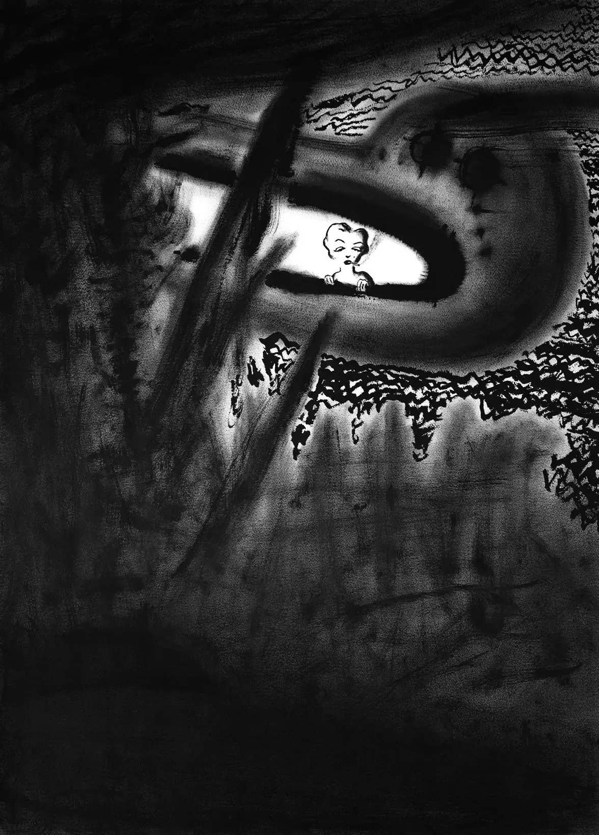 此次展出作品「夢露」系列中,彈甲一運用有別於傳統技法及媒材,來回應水墨傳統精神中的「筆墨語境」,並檢視當代生活環境上的劇烈變化。近幾年新聞中不斷播放世界各地的氣候災難,千里之外的消息似乎離我們很遙遠,然而頻頻發生的天災卻讓人覺得近在咫尺。往日的美好世界彷彿一夕崩壞,不由自主讓人想到佛教的「末法時代」似乎悄悄到來,「成住壞空」彷彿成為生命中的必然。
