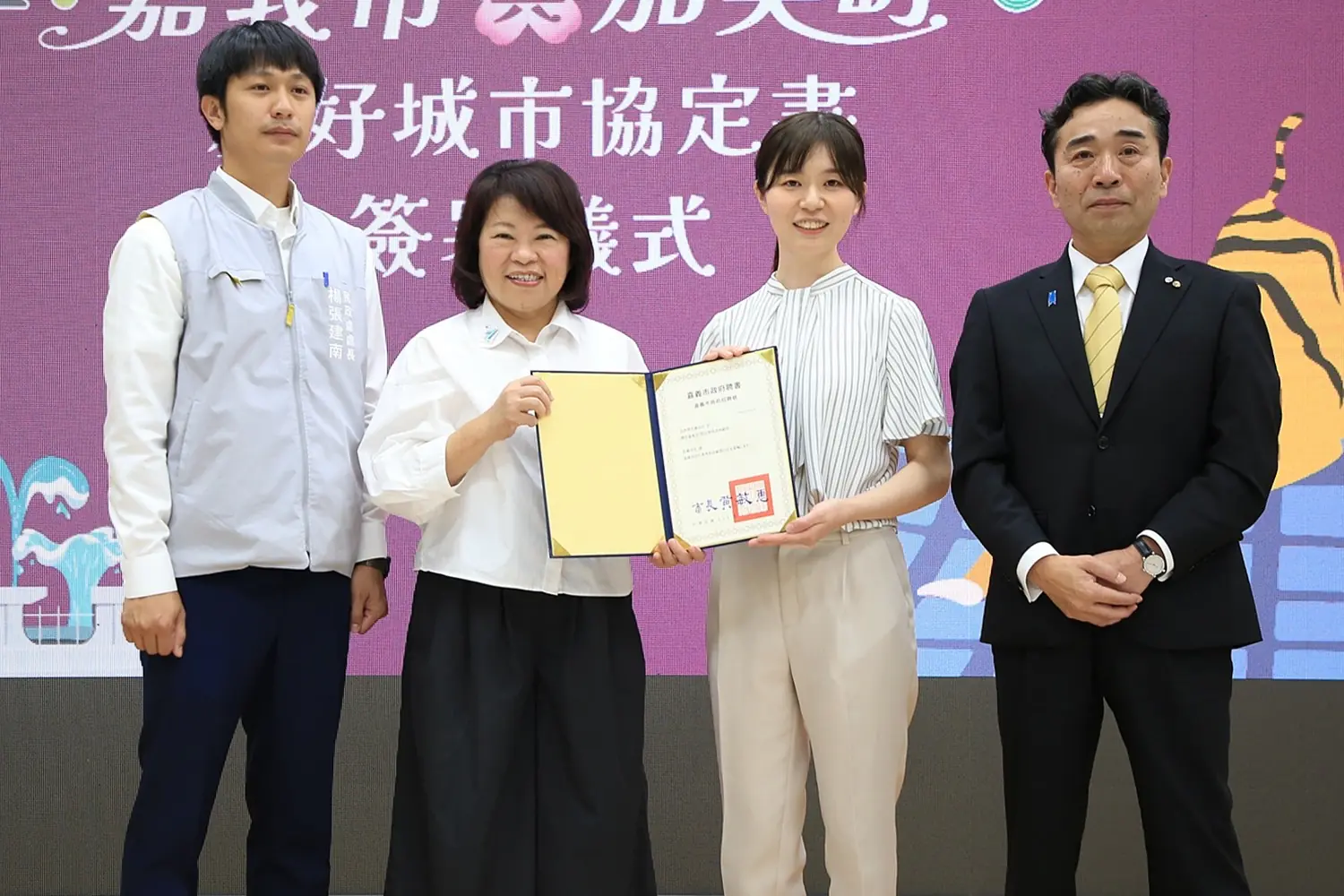 本次簽署儀式中,黃敏惠市長也宣布一項驚喜,嘉義市政府將自今年5月起迎來加美町派遣的職員佐藤由佳至嘉義市政府進行駐點交流,建立常態化交流機制。期盼透過其專長與橋梁角色,進一步促進雙方農產品與商品交流,並深化觀光、文化與商業往來。