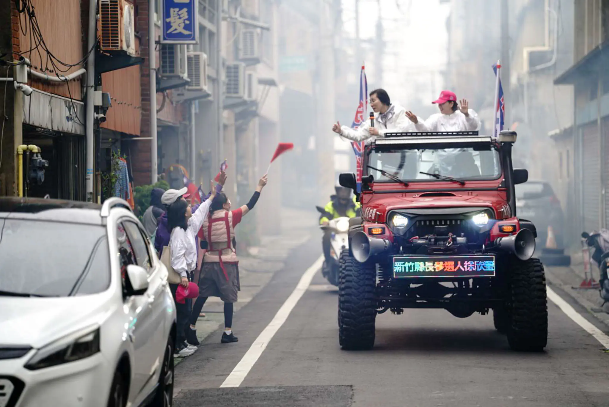國民黨新竹縣長黨內初選民調今(25日)起連續三天正式啟動,新竹縣長參選人、立委徐欣瑩陸、空戰齊發,展開最後衝刺。國民黨立委已連日輪番到新竹縣為徐欣瑩助陣拜票,24日有王育敏、羅智強風雨相挺,今日由涂權吉陪同到湖口市場掃街,及黨團書記長林沛祥、游顥、顏寬恒陪同至北埔、峨眉、寶山進行車隊掃街,就是要把握最後三天,最大化催出支持者票源。