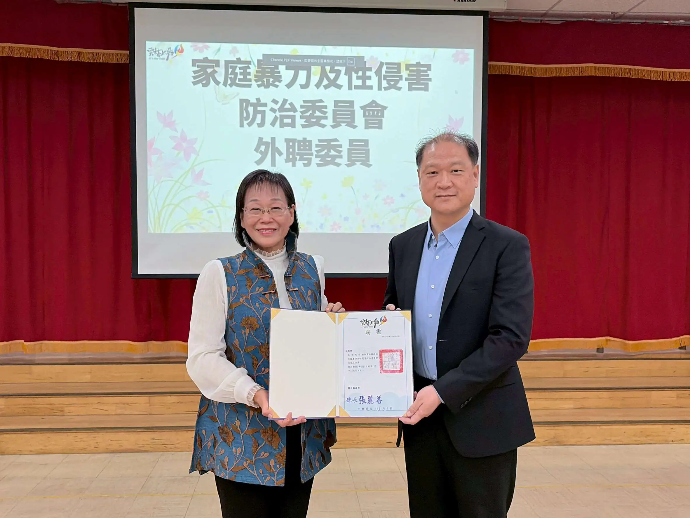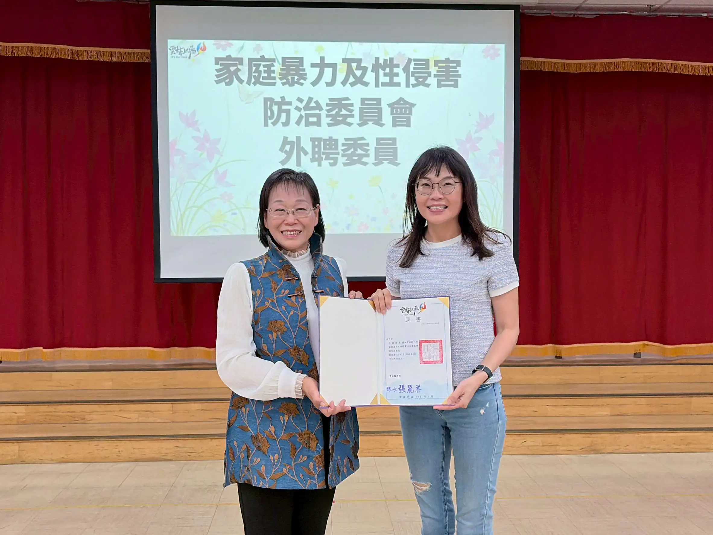 謝副縣長表示,本縣強化社會安全網包含積極推動家庭暴力防治社區初級預防工作,盼能促進民眾對於家庭暴力問題之敏感度,建立正確的預防與通報觀念,串聯社區安全防護網絡,並結合社區及社福團體的專業挹注,賡續設置「社區安全守護站」(目前本縣392村里共設置1,275站,截至114年12月31日),並培訓出79位本縣社區防暴宣講員(師)及13位衛生福利部全國社區防暴宣講師,本縣除麥寮鄉三盛社區發展 協會、古坑鄉古坑社區發展協會及林內鄉林中社區發展協會獲得衛生福利部1朵紫絲帶社區初級預防認證外,去年亦輔導斗南鎮新光社區發展協會及古坑鄉高林社區發展協會參加紫絲帶社區認證通過,並獲得1朵紫絲帶認證。可見本府對於社區初級預防之重視,期待深入社區協助推廣在地特色與家暴防治社區預防宣導方案,落實永續發展(SDGs)第三個目標促進全民的良好健康與社會福祉。