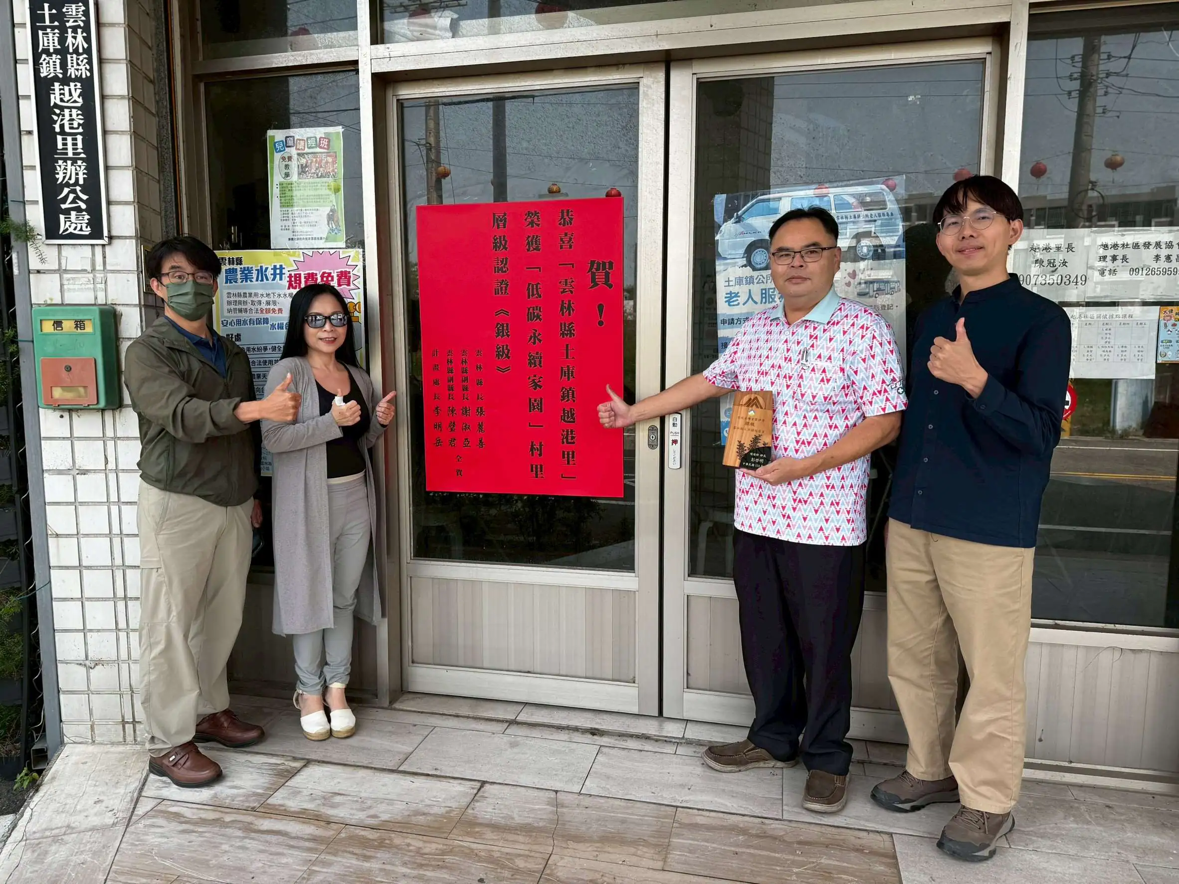 雲林縣政府積極推動低碳永續家園,社區行動成果再傳捷報!114年新增13處村里通過低碳永續家園認證,其中土庫鎮越港里榮獲銀級認證,另有12處村里取得銅級認證,包括林內鄉九芎村、西螺鎮鹿場里、崙背鄉草湖村、土庫鎮埤腳里、大埤鄉聯美村、斗南鎮石龜里、東勢鄉昌南村、麥寮鄉麥豐村、臺西鄉台西村、四湖鄉湖西村、口湖鄉口湖村及北港鎮樹腳里。全縣累計已達76處銅級及7處銀級村里,各鄉鎮市皆有社區參與,顯示低碳永續行動已由點擴展成面、穩健推展。