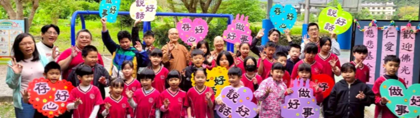 龍潭國小匏崙分校孩童們在老師們的帶領下,長期至佛光山蘭陽仁愛之家及社區陪伴長者,為長者帶來歡樂。蘭陽仁愛之家執行長妙志法師及宜蘭佛教會理事滿浩法師、妙振法師,在兒童節即將到來的前夕,代表佛光山慈悲基金會、宜蘭縣佛教會、蘭陽仁愛之家,來到龍潭國小匏崙分校,贈送佛光愛心超商卡、文具組、精緻點心禮盒、大蘋果等禮物,感謝孩子們從小就能發揮愛心、服務奉獻、讓長者們享受祖孫共學的歡樂。龍潭國小主任林祐農、匏崙分校主任陳穎川及師生四十餘人,提前歡度充滿愛心、善心、歡喜心的「三好兒童節」。
