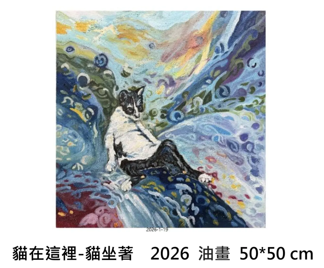 本次展出主要聚焦於兩大系列作品:「魚」與「貓」,象徵情緒的游走與靈魂的載體。