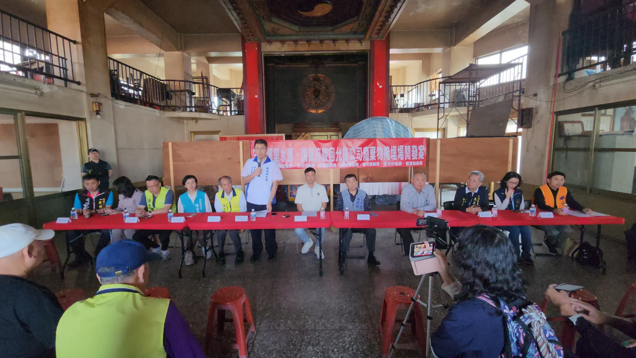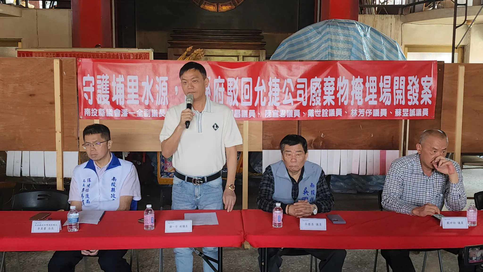 由於業者並未於期限內完成資料補正也未舉辦說明會,今天上午10時南投縣議會副議長潘一全、議員陳宜君、蘇昱誠、吳國昌、黃世芳、林芳伃、戴世詮、埔里鎮長廖志城、立委馬文君服務處執行長楊樹煌、「反對埔里鎮設置廢棄物掩埋場大聯盟」總召集人黃啓瑞及多名鎮民代表、里長、社區理事長於水頭里金龍宮召開記者會,邀縣府環保局長李易書針對該案進度進行說明,也要求縣府駁回廢棄物掩埋場申請案。