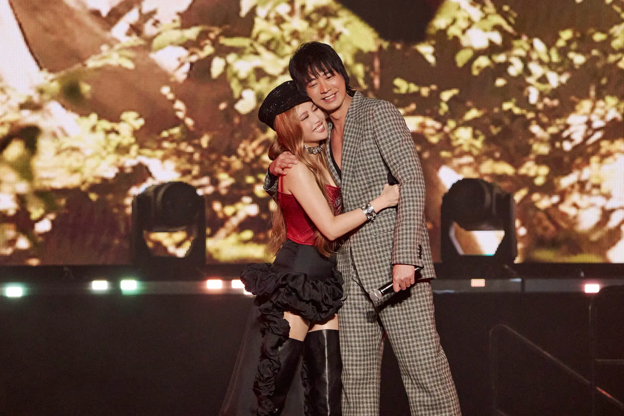 這對「玲薇不亂」的鐵肺組合難得再次聚首,話匣子一開便逗得全場歌迷笑開懷,彼此更展現出英雌惜英雌的惺惺相惜之情;兩人飆唱完〈有一種悲傷〉後,A-Lin 忍不住對李佳薇豎起大拇指,大讚其鐵肺嗓音穿透力簡直「遠傳千里」,驚呼:「妳太厲害了吧!剛才那一聲高音,我看連虹橋機場的人都聽到了!」李佳薇則猛誇 A-Lin 美到窒息,直言:「這麼近距離站在妳旁邊,真的覺得妳超美!」更自嘲若是沒化妝,走在路上很怕沒人認得出來。聽到好姊妹這番話,A-Lin 立刻暖心力挺:「妳的美是天生獨一無二的!」隨即更幽默自曝,其實自己台上台下的裝扮判若兩人,她笑說:「大家都知道我其實妝前妝後是兩個不同的人,有一次沒化妝逛街不小心被認出來,我都會立刻切換『高八度音』模式,急忙否認:『喔唷!我不是 A-Lin 啦!』」