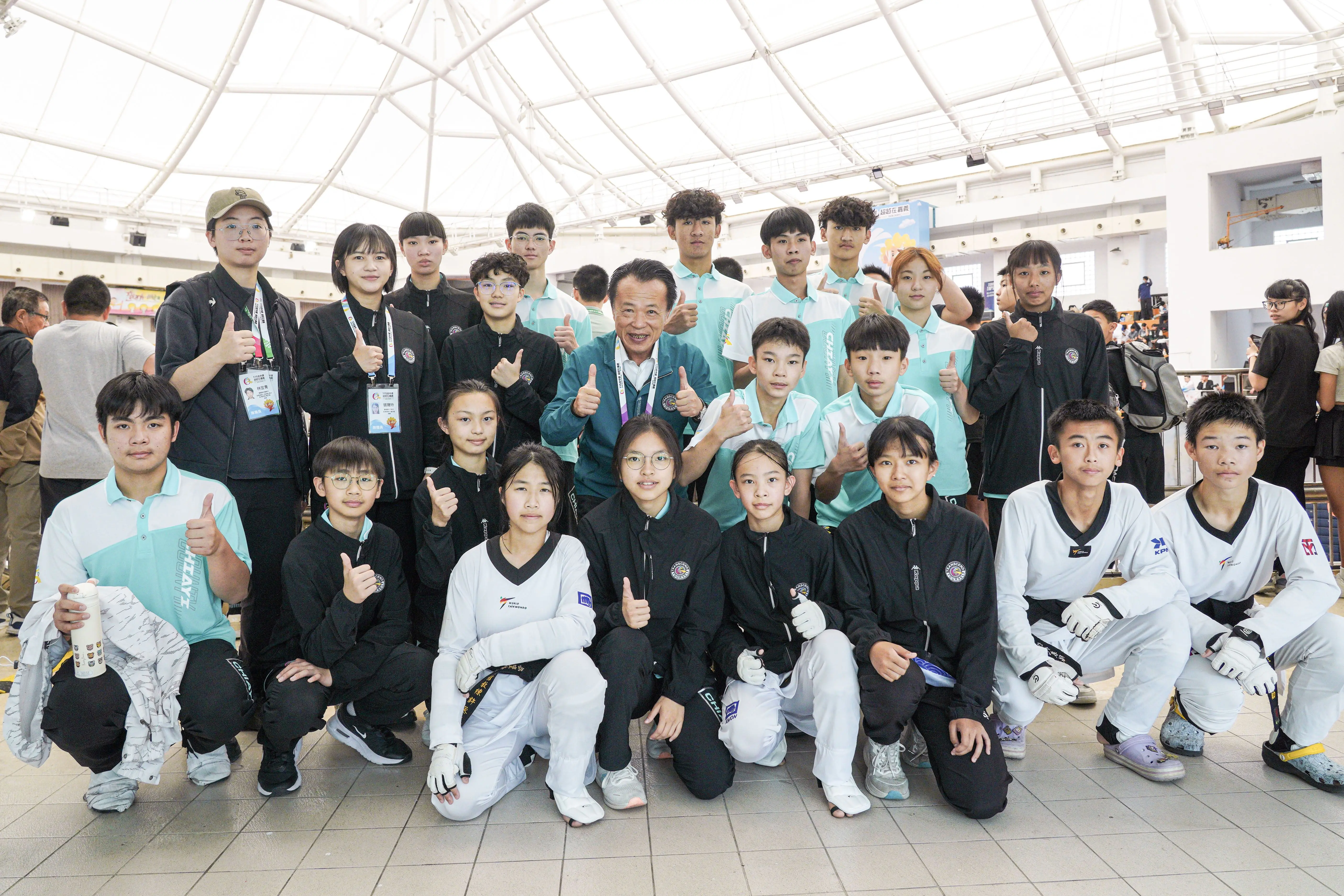 翁章梁縣長關心全中運跆拳道賽事 勉勵選手全力爭取佳績