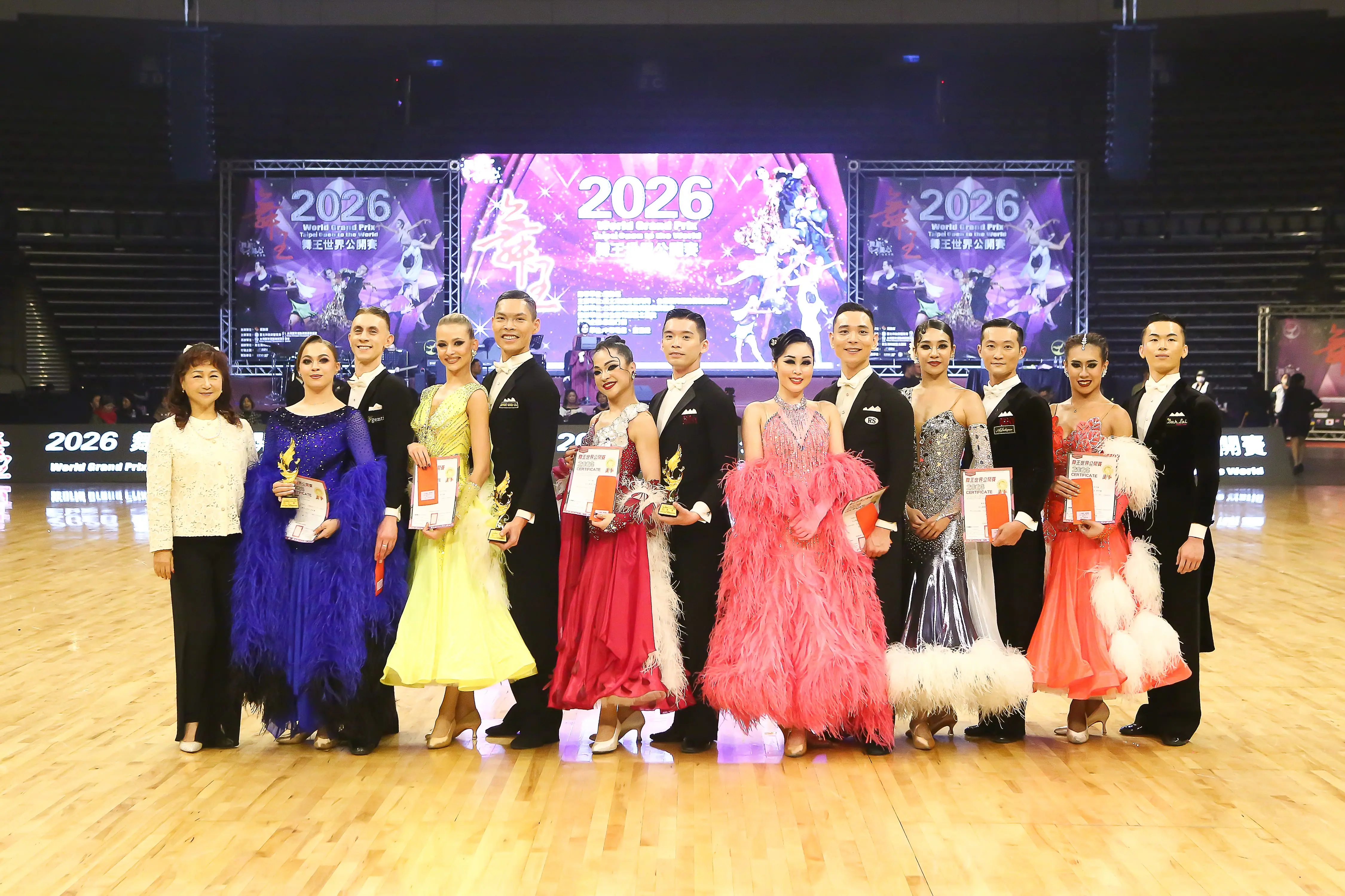 世界業餘公開組拉丁舞獲獎選手於臺北小巨蛋合影