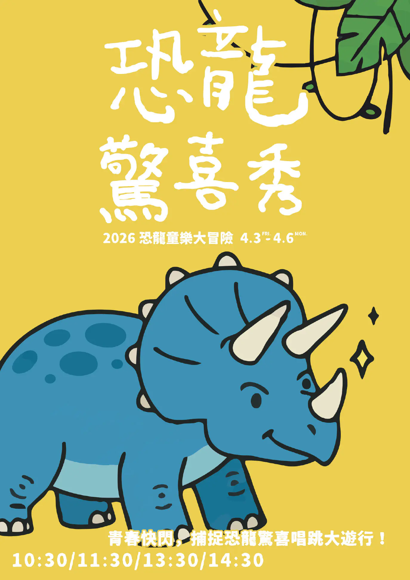 各主題活動的每日場次及時間,請詳見科工館官網「恐龍童樂大冒險」活動活動訊息或下方摘錄之活動簡要資訊。