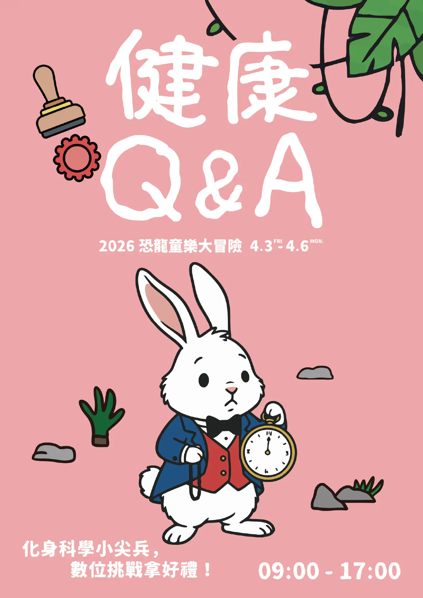 「恐龍集章趣」集章參與恐龍幸運轉盤:我們誠摯歡迎民眾進入常設廳參觀,除了在1F大廳活動服務臺之外,還可在上述活動地點包括B1F兒童科學園中庭、長廊及夢想號、奇幻國等展廳、4F健康探索廳、B3F大銀幕電影院等地參加活動時順便電子集章或紙本闖關,共有8個章,集滿5個就可以至1F恐龍集章總部參與「恐龍幸運轉盤1次」或兌換禮物。
