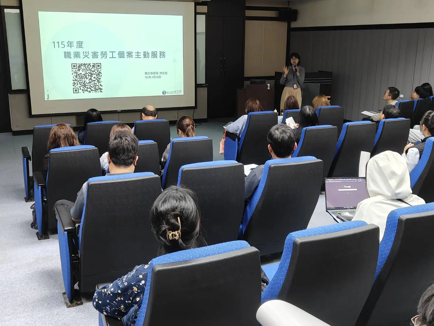 台中市政府勞工局於 3月26日在東區勞工服務中心舉辦「115年度批發及零售業職業安全衛生宣導會」,邀請轄內相關事業單位及工作者共48人參加,透過法令宣導及災害案例解析,提升批發及零售業職場安全衛生意識,降低作業災害風險。