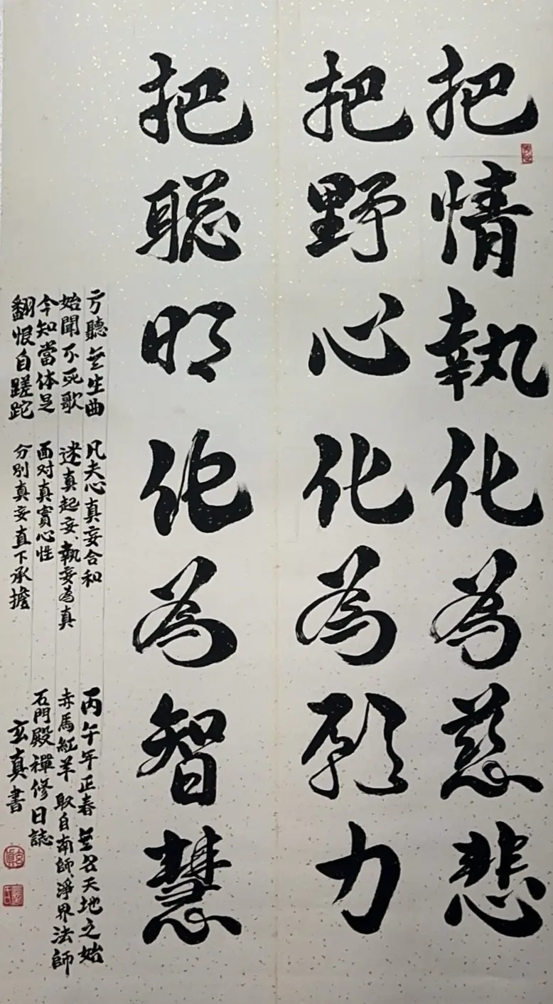 藝展竟心藝苑苑長王佳以老師分享,藝術不僅是形式的創作,更是回歸內在、安定心靈的過程。她的膠彩作品融合書法線條節奏與膠彩色彩層次,並透過霧吹、滴流與拍打等技法,展現自然生命的律動與細膩典雅的畫面質感。此外,包含羅珈瑩、詹彩鳳、許倩怡、黃曼凝、詹珮珊及李鳳珠等多位創作者亦共同參與展出,盼藉此展覽匯聚豐富而多元的正向力量,並傳遞給觀展人。