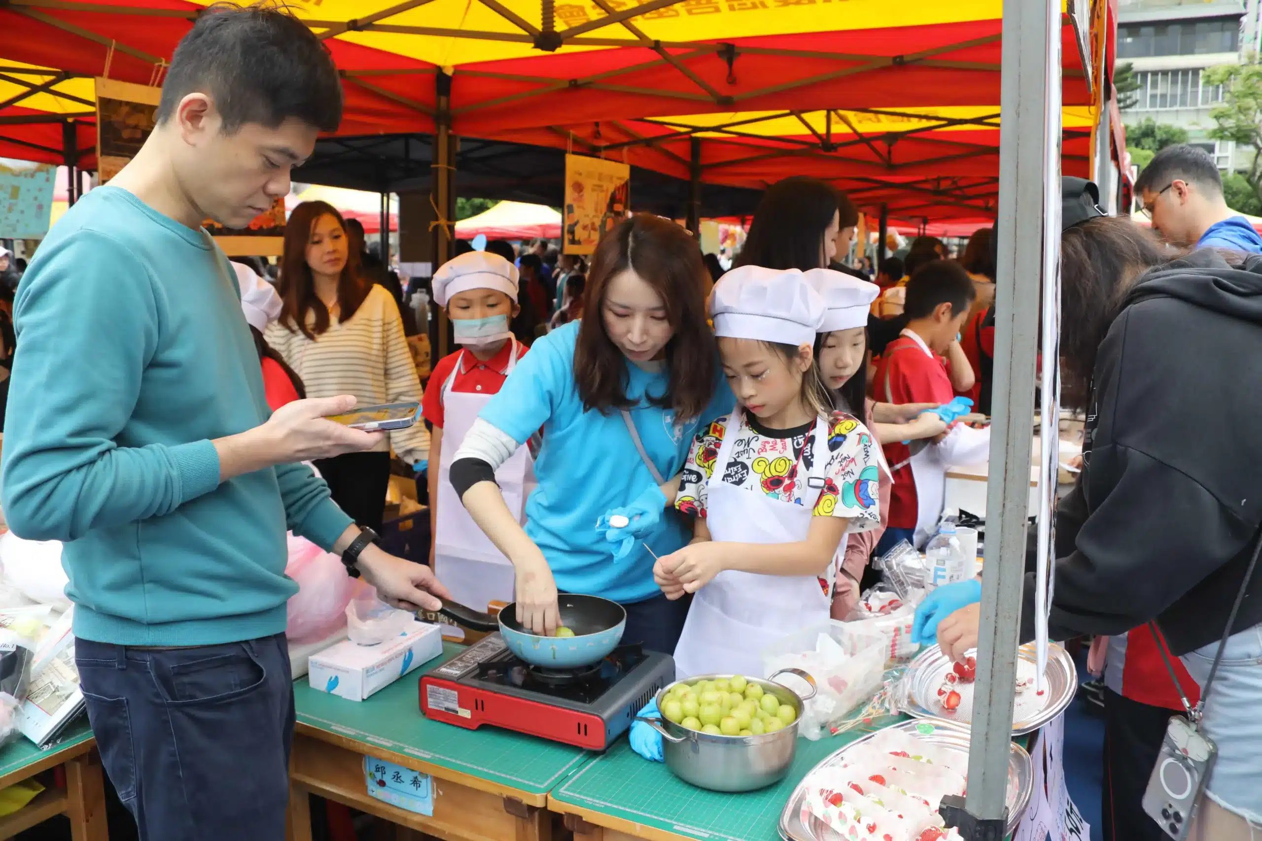 園遊會活動後續準時開鑼,除校內同學外、許多家長、校友、在地民眾也共襄盛舉,校園內人聲鼎沸。在老師的指導下,3至6年級的各班學生化身為「小小店長」,精心籌劃了包括美食、康樂、跳蚤市場、益智遊戲、才藝表演等多元攤位。此外,社區里長、消防隊與警察局亦響應設攤,透過互動進行防災、防詐等安全宣導,讓安全教育紮根校園。