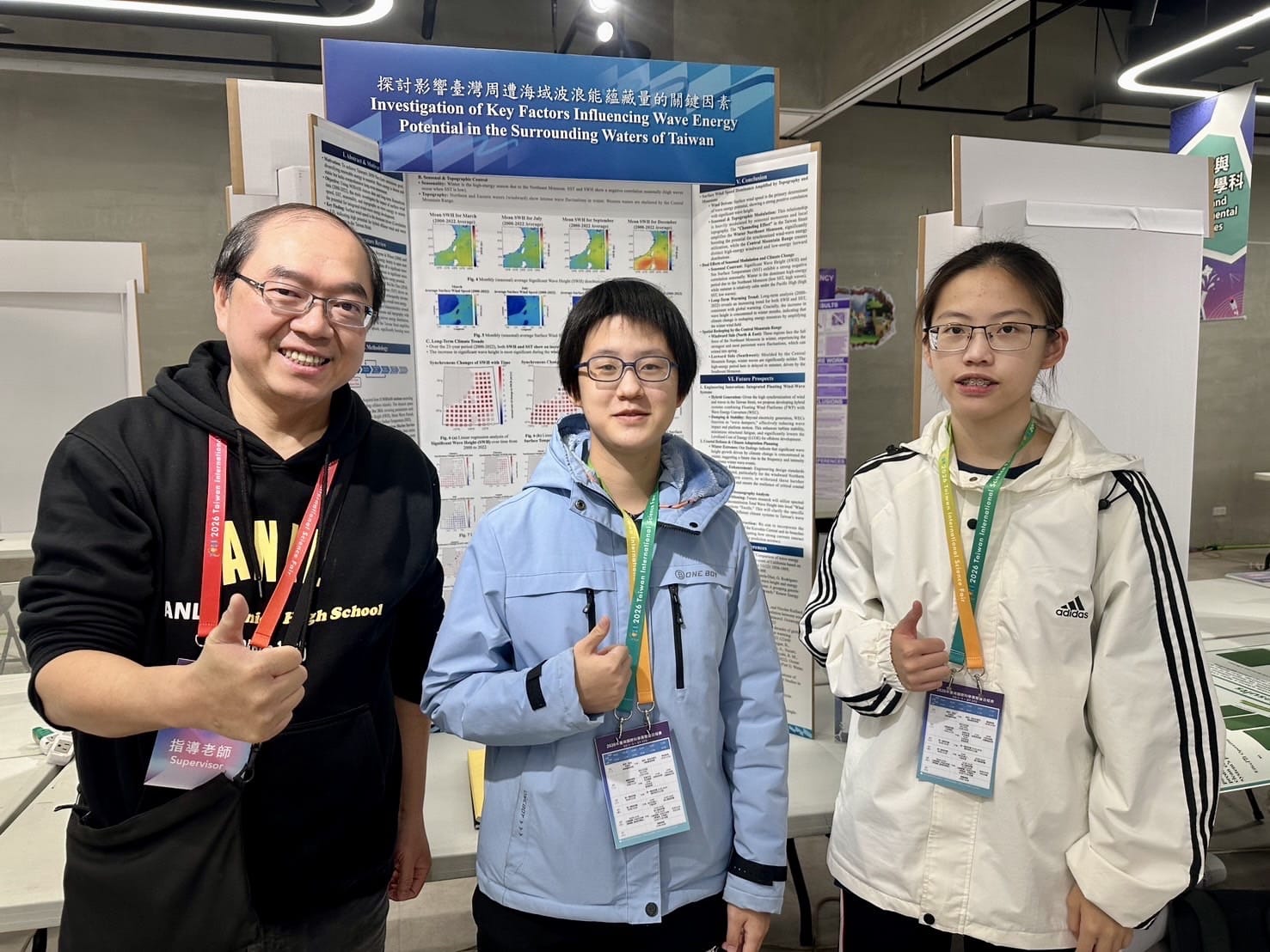 指導老師劉育祈表示,難得的是今年參賽學生皆為高三同學,在升學準備壓力之下,仍持續投入研究,為興趣理想全力以赴。蘇暐恩與陳樂宣同學,隨著在「波浪能」相關研究逐步深入,才發現需在龐大的海洋資料中抽絲剝繭、尋找規律,面對挑戰,兩人選擇迎難而上,透過自主學習,逐步培養閱讀期刊論文的能力,學習程式撰寫,進行大數據分析,展開超越課堂框架、充滿探索與成長的研究旅程。