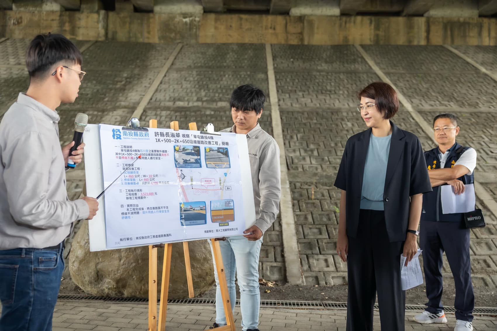 許縣長表示,草屯需改善的路面及排水溝相當多,有的是路面已使用多年,也有的是因近年氣候變化大,傳統排水溝排水量不足需改善,此次收到鄉親及民意代表陳情,共會勘17處需改善路段,預計花費約2,560萬元施工,縣府將儘快發包,另外也感謝縣議會的支持,讓縣府得以改善公共建設。