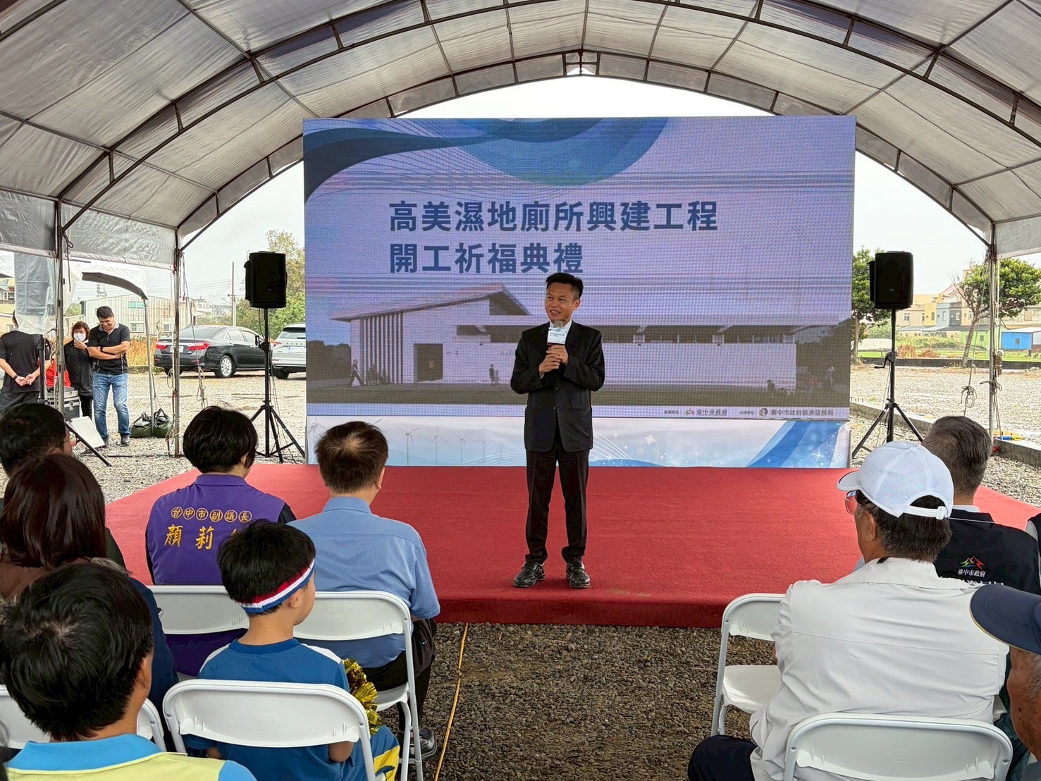 台中市政府副秘書長林育鴻今(1)日出席「高美濕地公共廁所新建工程」動土祈福典禮表示,高美濕地不僅是台中的自然瑰寶,更是世界旅客認識台中的重要窗口。市府於2019年完成遊客服務中心啟用,提供完善公共服務與生態教育空間,如今再推動公共廁所新建工程,將進一步完善木棧道周邊公共設施,讓國內外遊客都能享有更便利、舒適的遊憩環境。