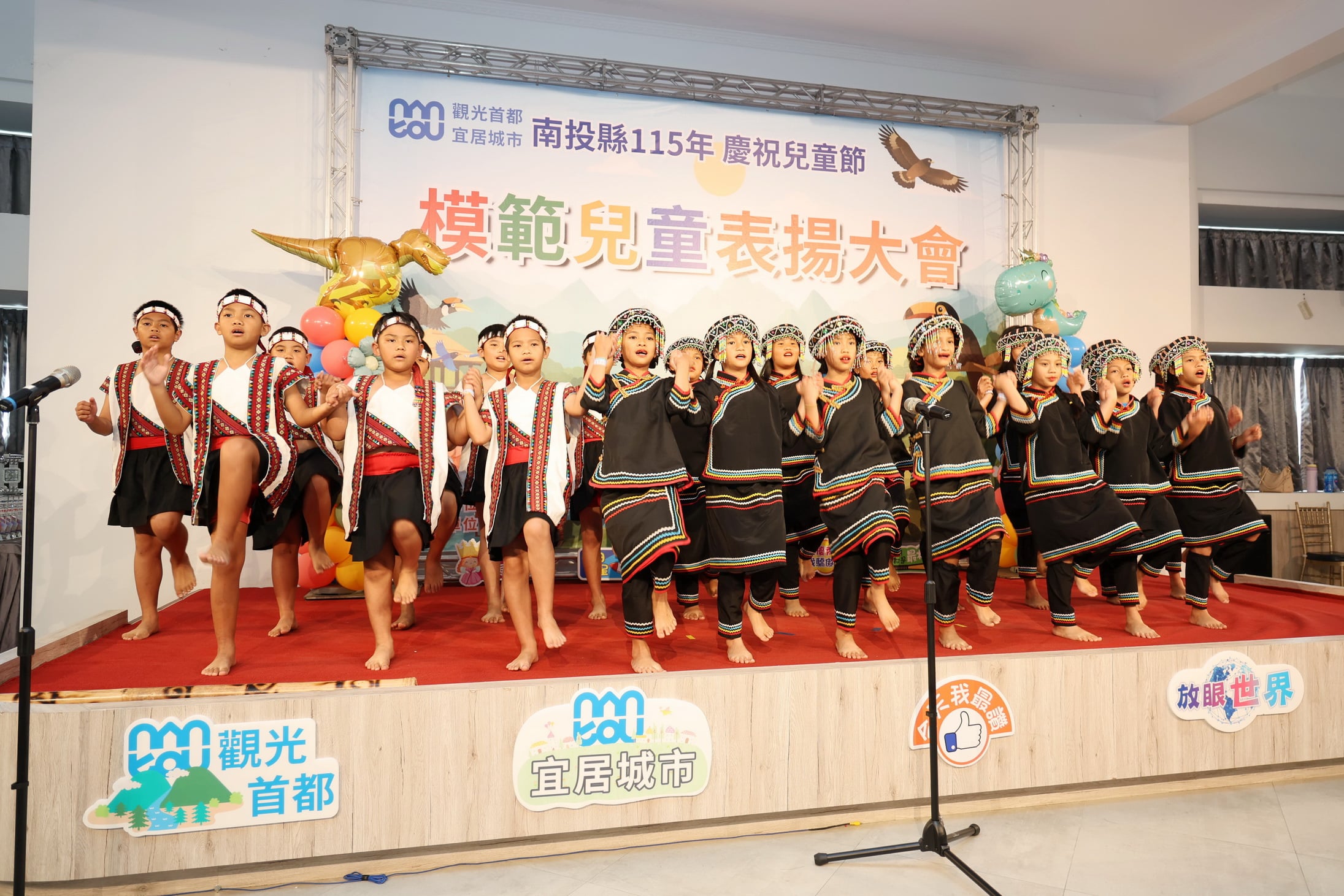 當天活動安排南投縣僑光國小街舞社熱舞表演,學生隨著動感音樂,自信地展現出整齊、俐落舞步,為活動增添熱鬧與活力氣氛。另有鑑於品格教育的重要性,並且可藉朗朗上口的歌曲潛移默化於兒童內心,王瑞德副縣長特別邀請南投縣信義鄉羅娜國小LULUNA合唱團以最自然、貼近人心的方式,詮釋區桂芝老師作詞與音樂家張明煌先生譜曲的「四維八德幸福歌」,並在兒童節表揚大會進行首次發表。希藉由品格教育與音樂旋律完美的結合,讓獲獎學子領略音樂之美也感受品格修養的重要。另外九九峰動物樂園為支持南投縣的教育發展,特為大小朋友們準備一連串的魔術表演,現場充滿歡聲笑語,氣氛十分熱絡。