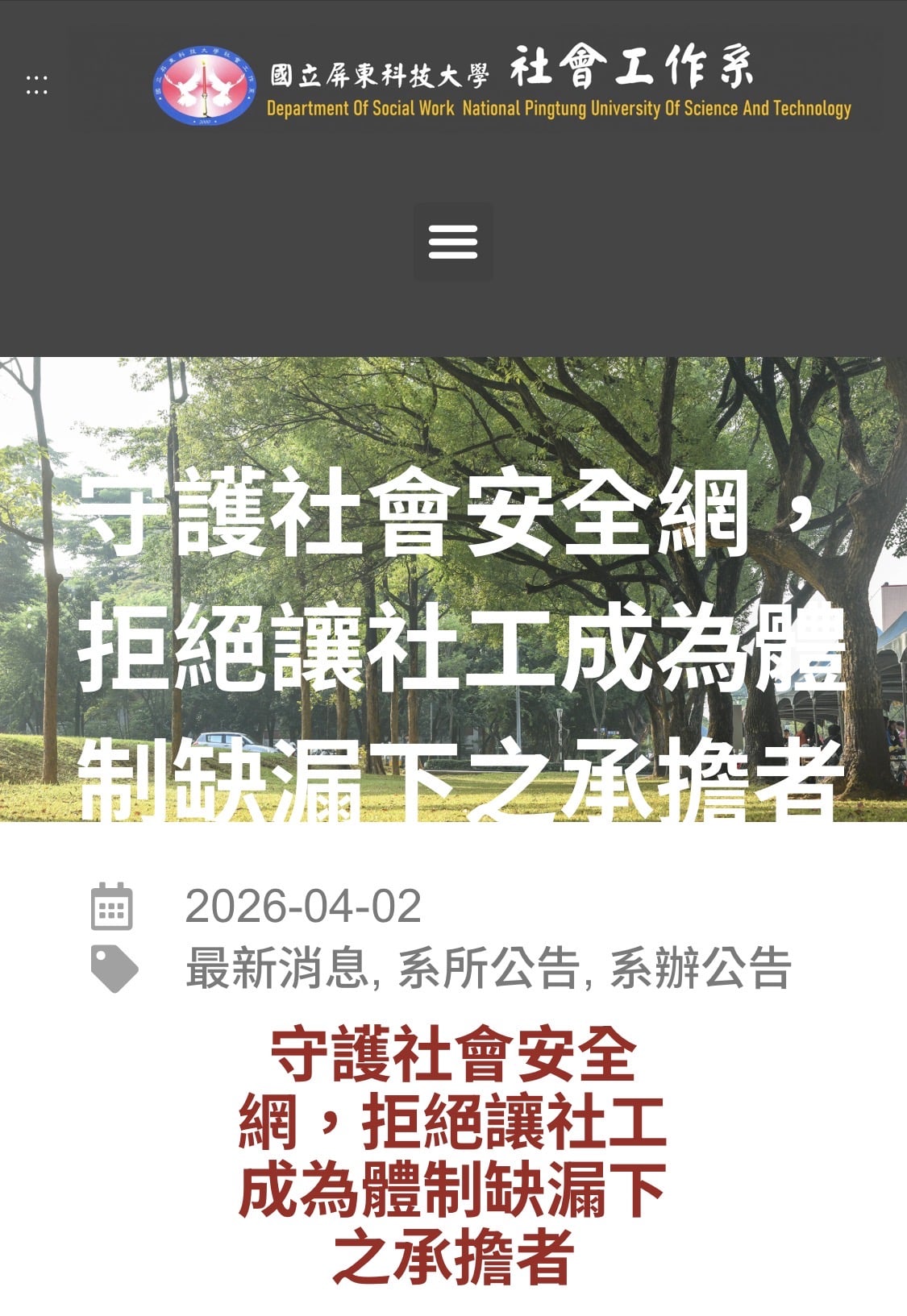 此次聯合聲明以「守護社會安全網,拒絕讓社工成為體制缺漏下之承擔者」為題,由全台20個社會工作與社會福利相關系所共同發起,直指本案所牽動的,已不只是單一案件的司法爭議,更涉及社工專業定位、兒少保護制度與整體社會安全網的未來。