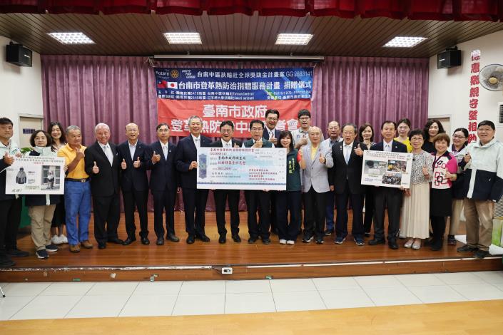 市長黃偉哲表示,登革熱防治是台南市每年至關重要的公共衛生工作,必須仰賴政府與民間攜手合作才能有效防堵疫情。此次非常感謝台南中區扶輪社秉持社區服務精神,邀集國際扶輪3470地區、2640地區日本堺大泉扶輪社共同推動「2025-26 國際扶輪全球獎助金Global Grant專案(GG 2683141)-台南市登革熱防治捐贈服務計畫」,鼎力支持台南市的登革熱防治工作,充分展現扶輪社回饋社會的用心,以及發揮強大的公私協力精神。