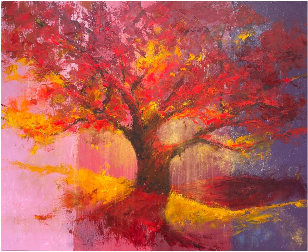 《四季丹色》2026|油彩 Oil on canvas|100 × 90 cm。