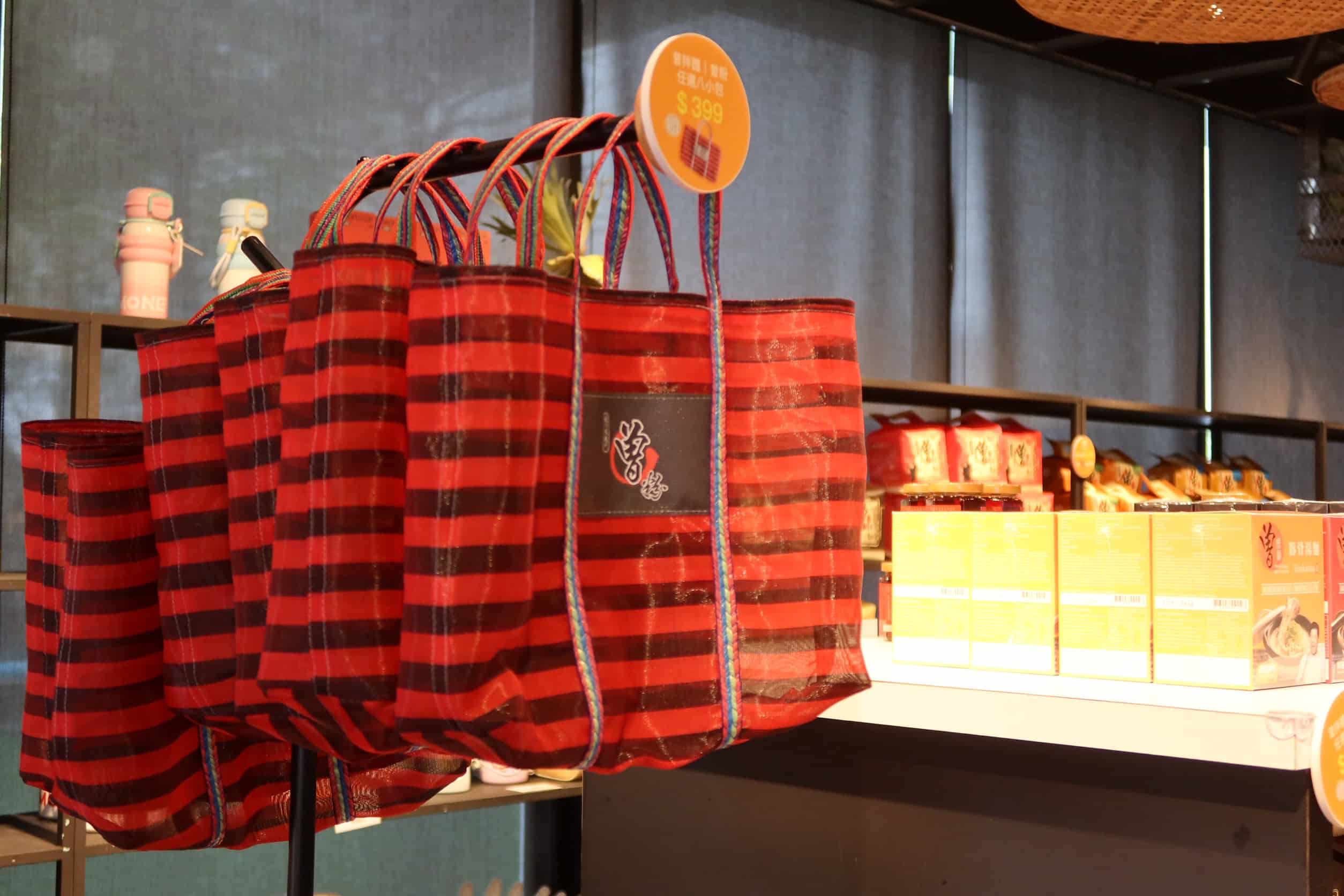 - 台式浪漫驚喜: 凡於櫃位現場任選8小包不同口味之拌麵享超值優惠$399元,再加碼贈送實用度滿分的台灣復古時尚代表「茄芷袋」乙個。