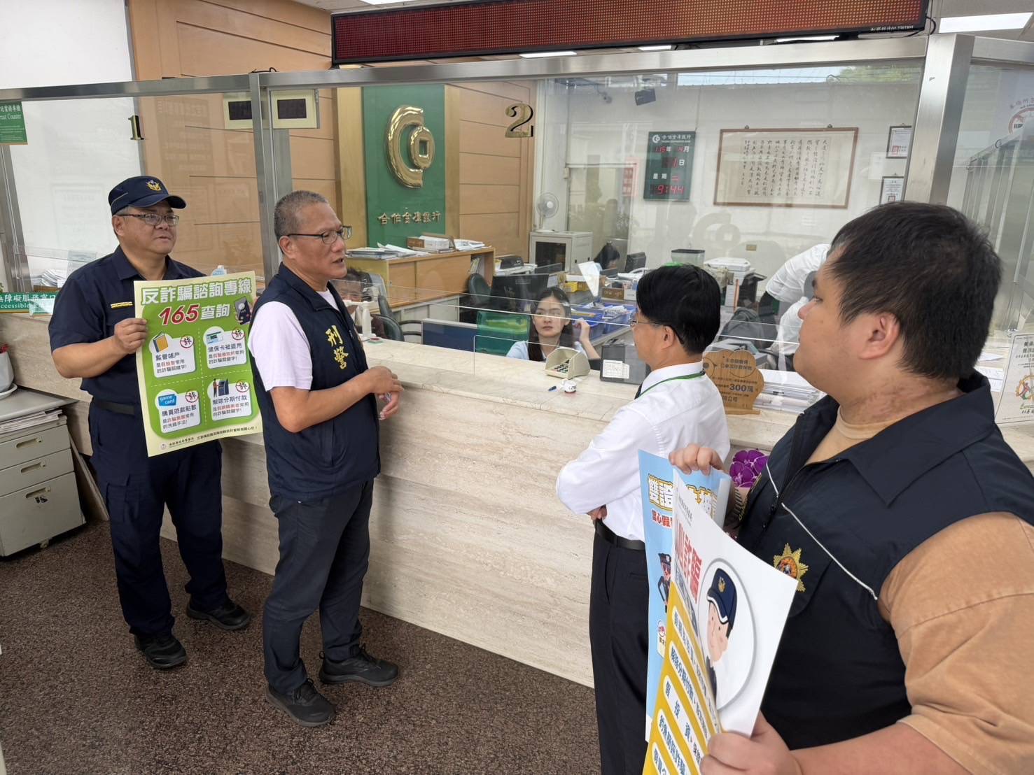 為持續強化防詐作為,守護民眾財產安全,集集警分局近日啟動新一波警銀合作行動,由黃副分局長親自率隊,深入轄內金融機構,包括郵局、農會與各大銀行分行,推動升級版防詐措施,展現警方打擊詐騙的決心與行動力。