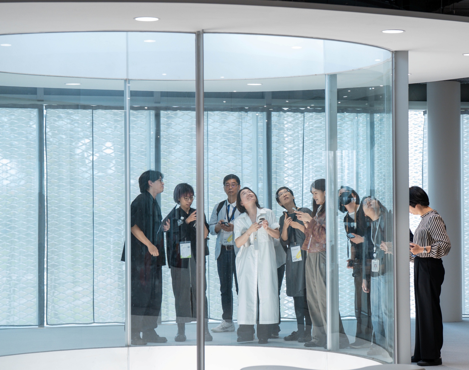 《漫遊者》採免下載設計,民眾只需以手機開啟網站並登入,即可於場館中尋找啟動關卡的關鍵「圖形」,完成互動解謎後即可獲得「靈感種子」。蒐集成果後,可至數位光境上傳「漫遊足跡」,即時轉化為環形LED裝置上的動態影像,留下專屬的探索紀錄,讓個人足跡化為可視化的創作呈現。