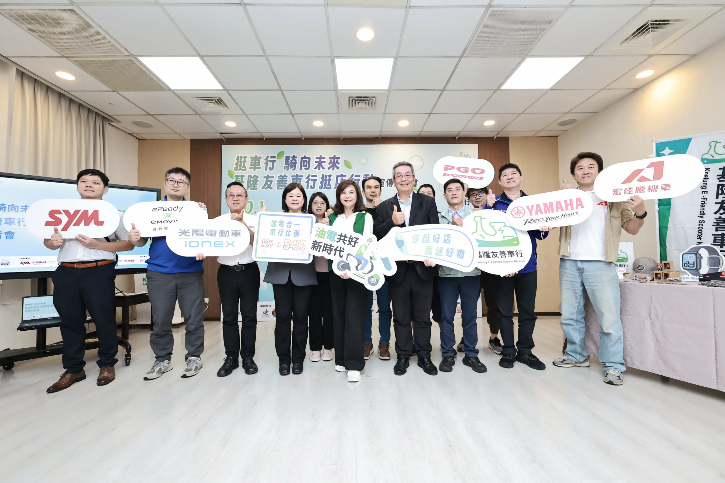 基隆市政府今(10)日上午舉行「挺車行,騎向未來」基隆友善車行挺店宣傳記者會,現場由基隆市副市長邱佩琳、產業發展處長蔡馥嚀、台灣區車輛工業同業公會召集人吳添福、基隆市機車商業同業公會理事長王志偉、全國八大機車原廠代表與機車行業主一同出席,公私協力響應基隆傳統機車行轉型成果。