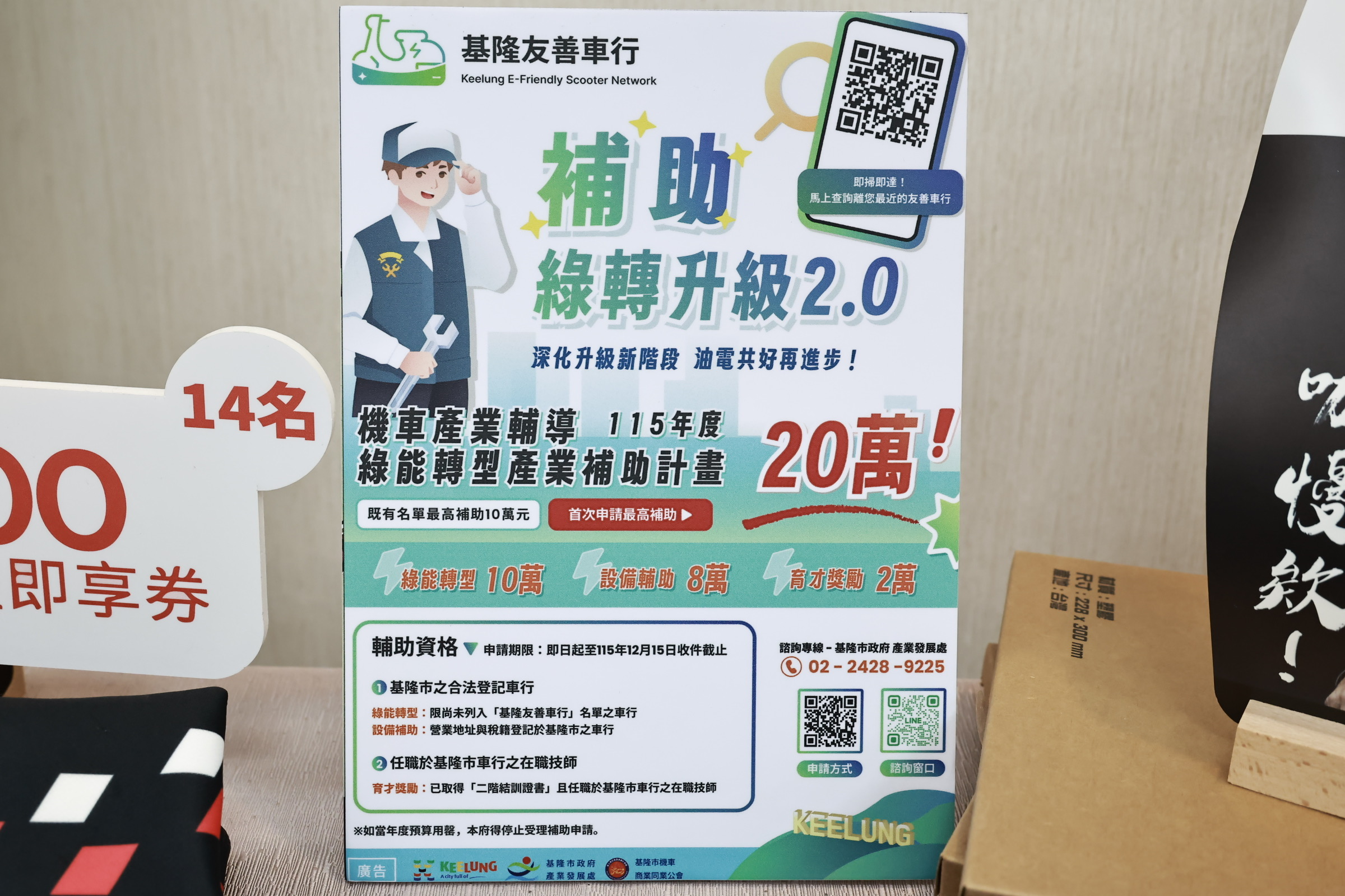 基隆市機車商業同業公會理事長王志偉也提到,對基隆市的機車行老闆來說,這兩年是決定未來二十年生計的關鍵轉折點。面對電動車的浪潮,基層車行原本充滿焦慮,擔心技術跟不上、生意被取代。但基隆市府這兩年的輔導,像是一劑強心針,讓傳統車行不再是站在岸邊看著浪潮,而是真正站在綠能轉型的潮浪尖端,成為衝浪的人。