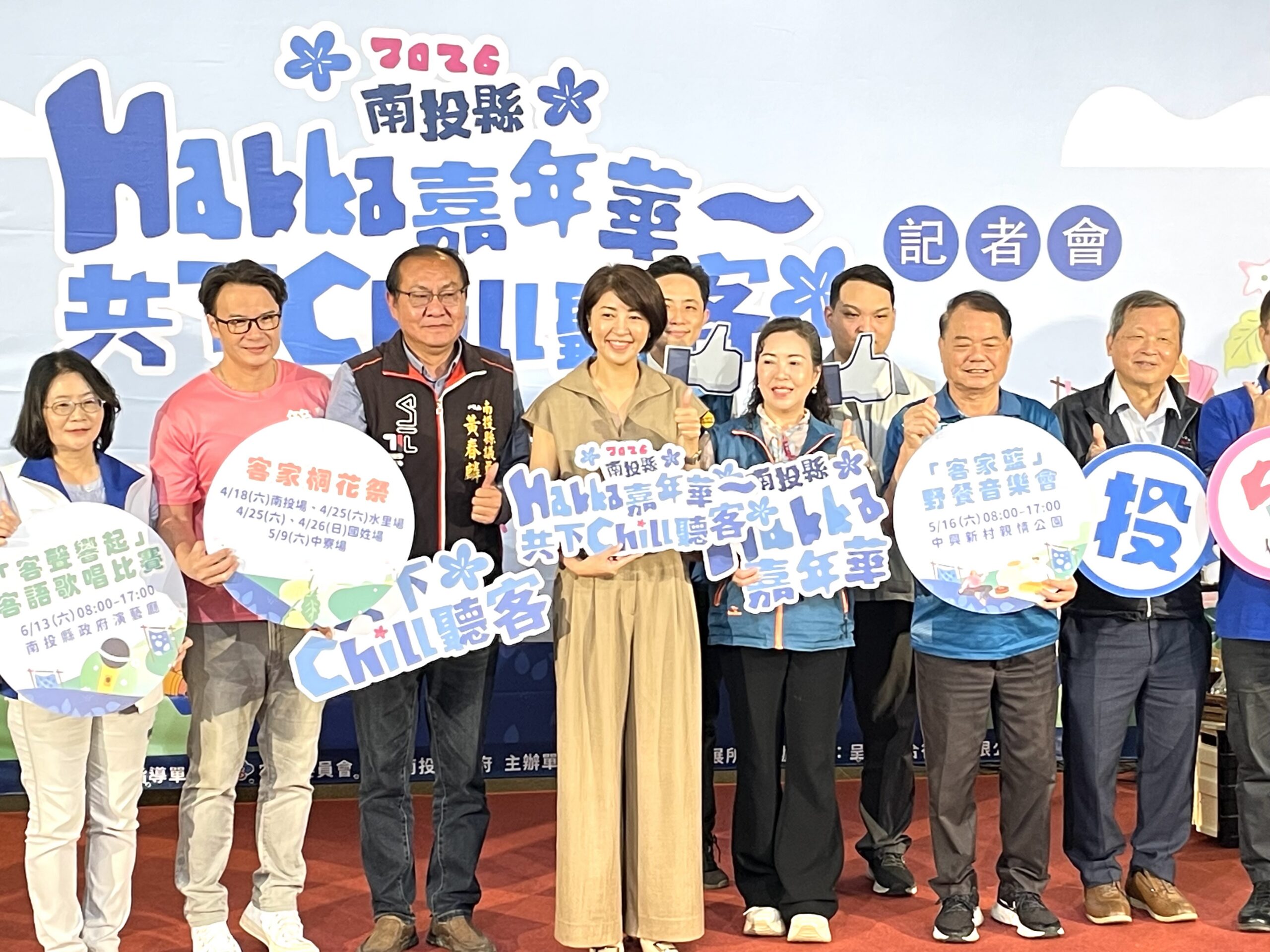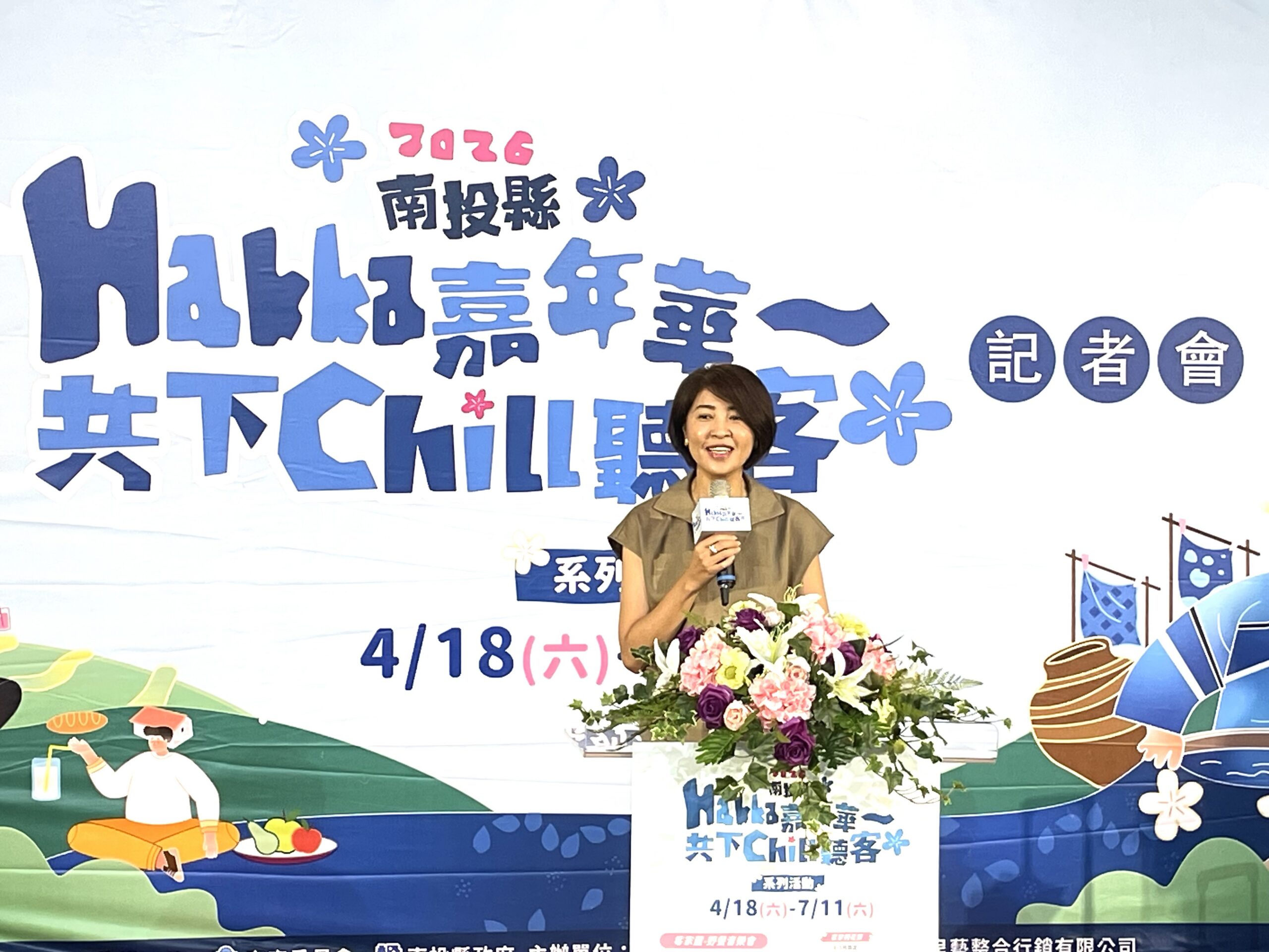 「2026南投Hakka嘉年華~共下Chill聽客」系列活動將於4月18日至7月11日登場,縣府於(10)日上午在一樓大廳舉辦記者會,縣長許淑華主持記者會表示,活動內容包括「客家桐花季」、「客家藍草地音樂會」、「客家歌唱比賽」及兒童劇演出等,歡迎大家到南投感受客家文化的魅力。