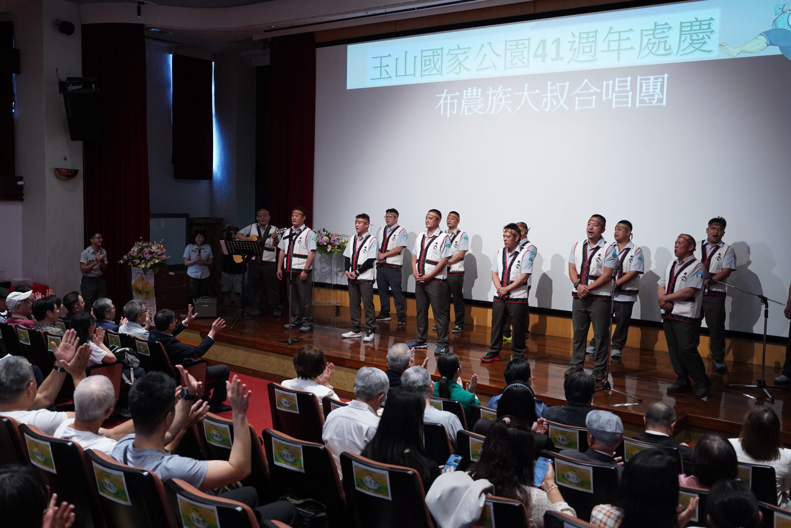 玉管處說明,本次處慶由管處布農族保育巡查員組成的「布農大叔合唱團」揭開序幕,以深沉和諧的天籟布農美音迎賓感恩。活動焦點之一為玉管處同仁親自執導並獲獎的《雲上守護者》的分享,詳實記錄第一屆巡山員(現改稱保育巡查員)方有水先生的守護歲月。今日方有水保育巡查員親自前來分享40多年來執勤實況,從艱辛的環境清理、嚴謹的生態監測,到高風險的山難救援與步道維護,展現了保育巡查員多元且紮實的工作全貌。透過「水里影展」策展人洪馬克導演與新舊世代巡查員的深度對話,傳遞山域守護經驗傳承的重要性,在此向所有巡山員致敬。這種結合實務影像與經驗分享的方式,能讓民眾更全面認識國家公園第一線工作的挑戰與價值。