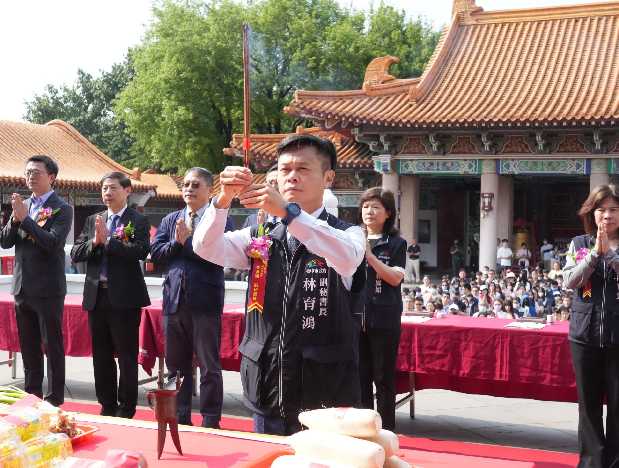 115年統測及國中會考進入倒數階段,台中市孔廟今(11)日在大成殿前廣場舉辦「躍馬迎福、筆定金榜」祈福許願活動,由台中市政府副秘書長林育鴻擔任主祭官,帶領600名民眾向至聖先師孔子行禮祈願,並安排「筆定金榜」、「先師朱筆加持」等儀式,為即將迎戰大考的學子加油打氣,祝福考生在先師庇佑下,從容應試、發揮實力、金榜題名。