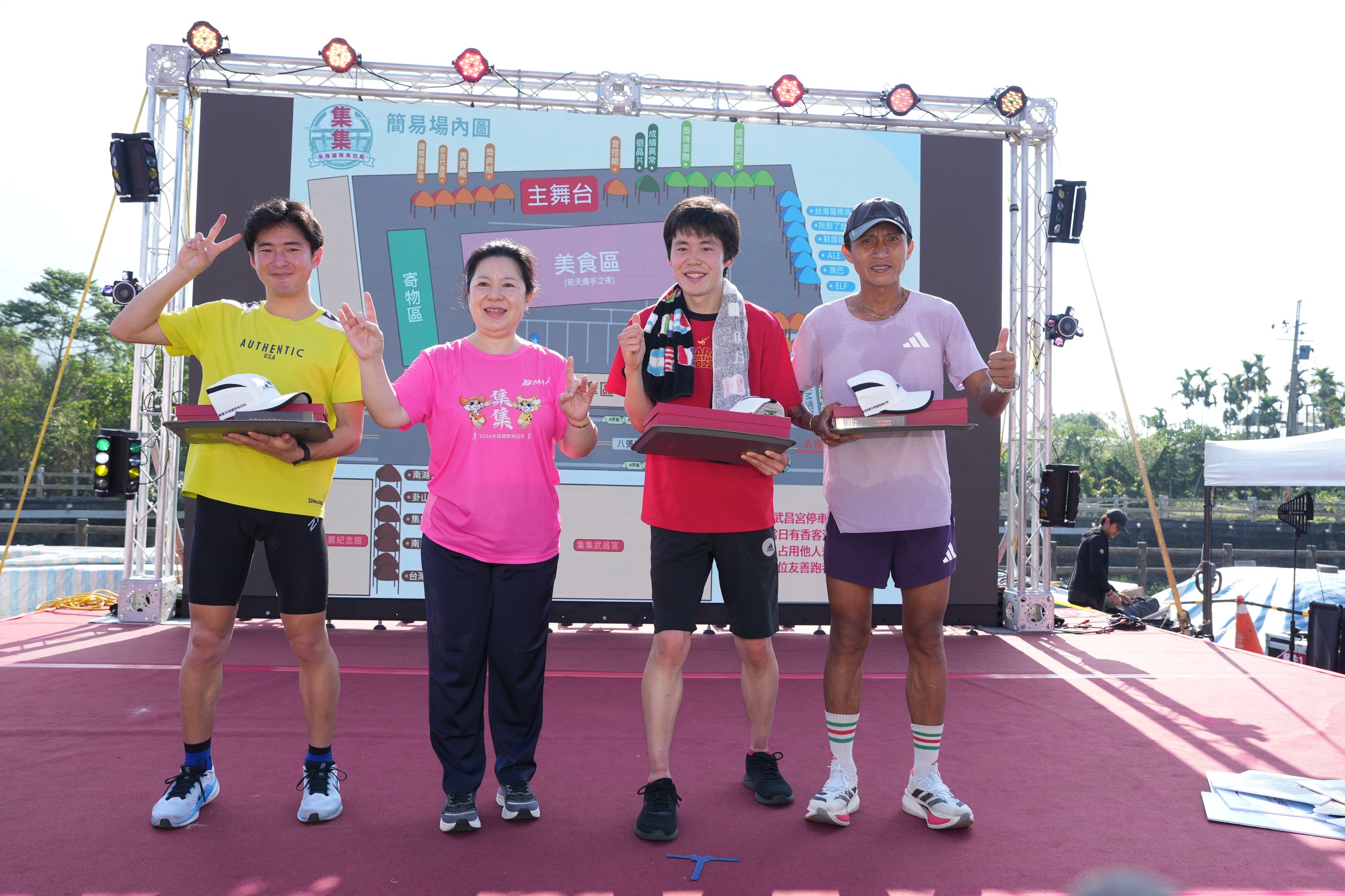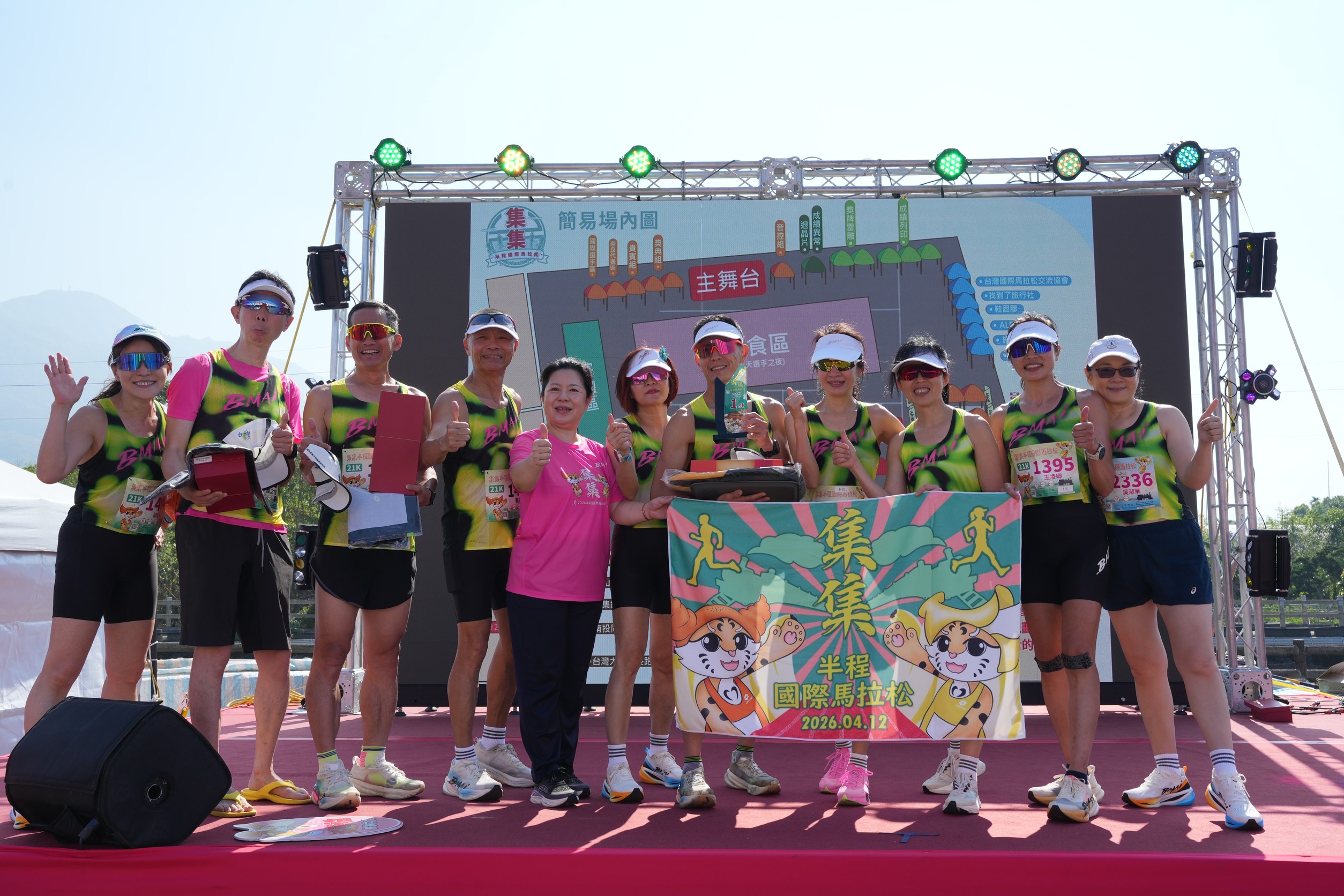 AIMS認證的半程馬拉松國際賽道「2026集集半程國際馬拉松」於本日(4月12日)在集集武昌宮由集集鎮長吳大村、集集鎮民代表會主席陳雅雯、南投縣副縣長王瑞德、立法委員游顥、立法委員蔡春綢、交通部觀光署日月潭國家風景區管理處處長王智益、經濟部水利署第四河川分署分署長張朝恭、縣議員黃春麟、縣議員陳淑惠、集集鎮民代表會副主席魏國州、代表吳榮志、代表陳玉花、代表陳泳旭、集集國中校長陳恆旭、集集國小陳彥文、永昌國小陳璿文等長官貴賓共同鳴槍起跑。
