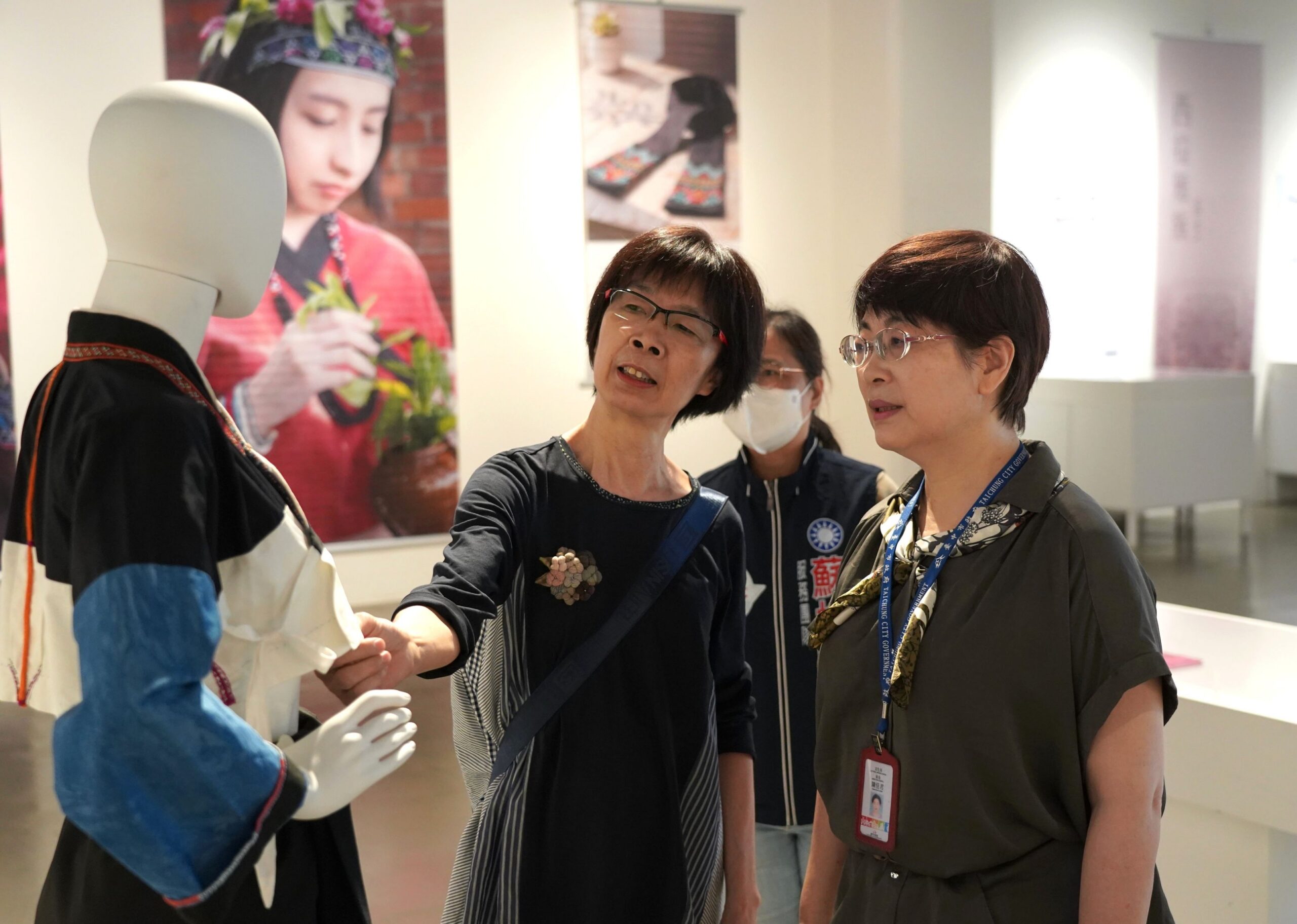 昨日開幕式,包括文化局長陳佳君、農業部水保署林宏鳴組長、國立台灣工藝研究發展中心郭敏慧組長、國立成功大學博物館郭美芳客座副研究員、國立成功大學孔憲法教授、北投文物館高本莉前館長、國立自然科學博物館陳叔倬研究員、台中市政府工商發展投資策進會副總幹事林家興、大里區公所主任賴靜慧、國光里長魏益川、台灣基督長老教會教會歴史委員會牧師王雅真、噶哈巫族織者潘正浩、原住民族作家悠蘭多又、文物收藏家鄭惠中、陳達明及多位纖維創作者等皆到場,立法院副院長江啟臣、市議員林碧秀、蘇柏興、李天生、張芬郁、李中也派代表共襄盛舉。