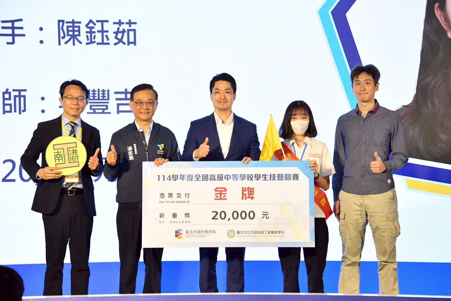 蔣萬特別提到南港高工劉彥頫同學,雖然目前在異地培訓,不僅在亞洲技能競賽奪下金牌,更榮獲「國家最佳選手」最高榮譽,令人十分驕傲。 [圖:北市政府秘書處]