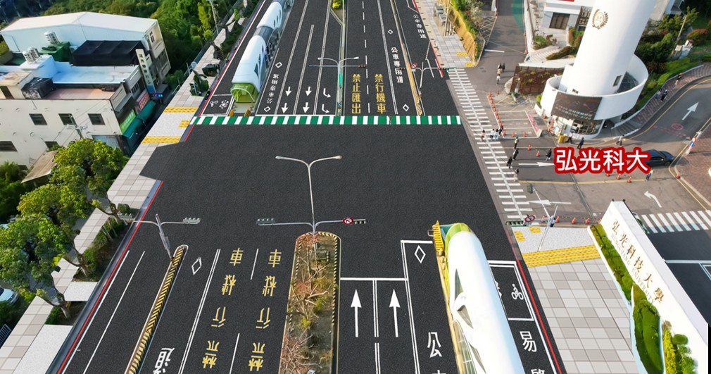建設局長陳大田表示,市府交通政策已由過往「以車為本」轉型為「以人為本」,改善範圍涵蓋台灣大道六至七段(弘光科大至靜宜大學),除進行路面燙平外,也同步優化人本設施,包括改善雙側人行道約1.5公里、增設行人庇護島11處、優化35處路口無障礙斜坡道及人行停等空間,並針對校園周邊8處易肇事路口進行整體改善,有效提升通學及通行安全。
