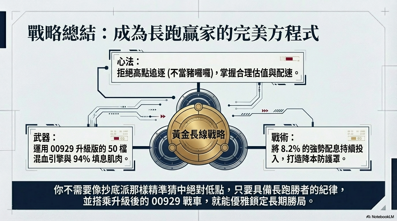 想成為長期投資的大贏家,不想當被拍暈的「豬囉囉」?現在正是投資 00929 的黃金進場點。基金醫生馮志源觀察到三大面向,首先是00929指數及選股核心邏輯已「獨自升級」,不僅成分股擴增至 50 檔且審核頻率提高為一年兩次,能更精準捕捉產業變化,並納入生技、綠能等科技精銳。隨著台積電與聯發科等權值股助陣,00929 已蛻變為兼具防禦與攻擊的混血強者,