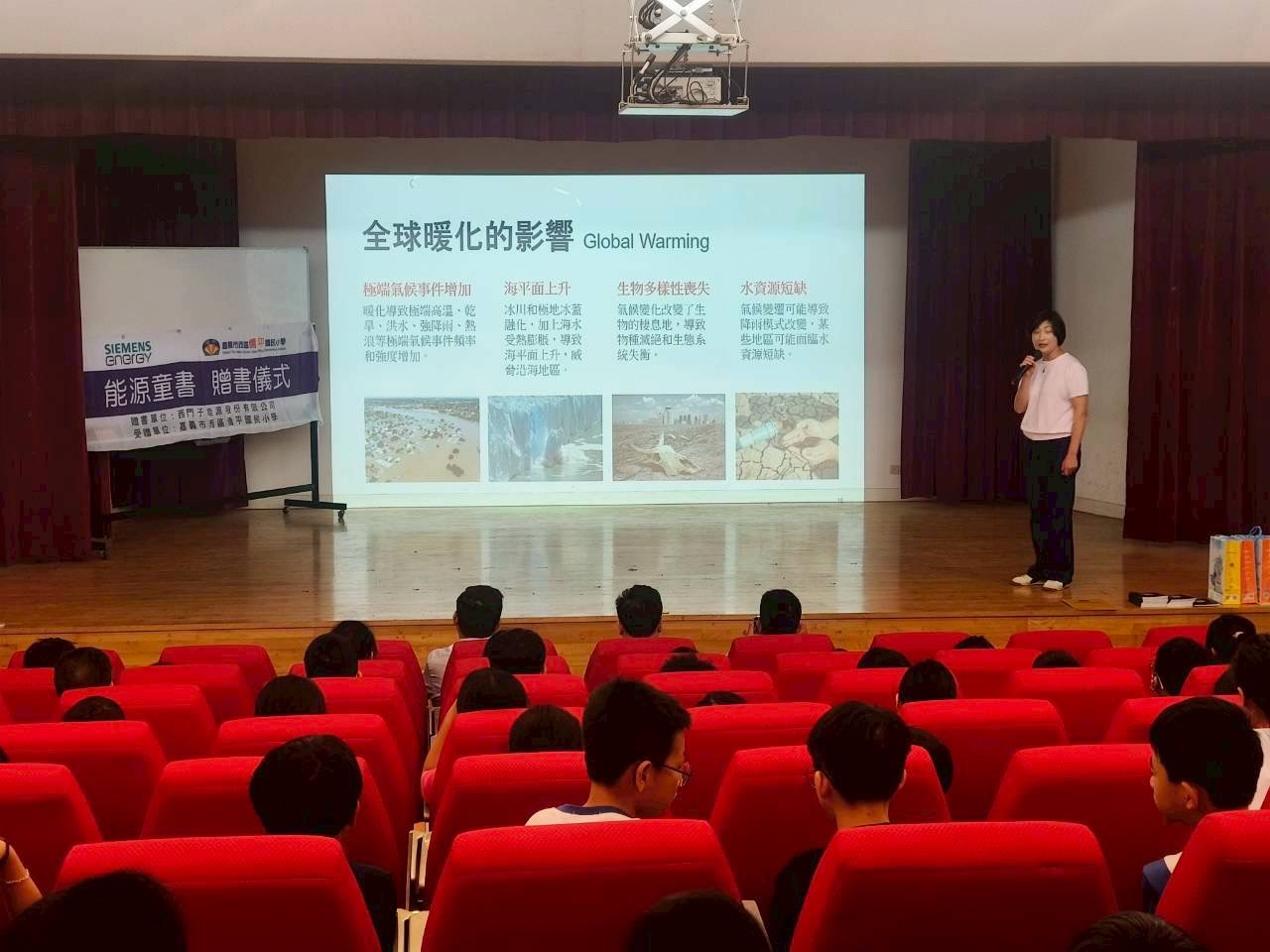 僑平國小五年級學生參與此次贈書籍宣導活動,透過西門子簡慧萍專員的詳盡分析與介紹,大家都非常專注於了解目前氣候變遷及全球暖化的議題,並且思考個人及企業可以進行的具體行動,例如:企業部分是加速風能發電能力,若缺乏風能,能源轉型將無法順利實現,轉型傳統電力天然氣是永續能源系統的可靠支柱,綠氫是利用再生能源電解水製成,碳排放量最低等許多新知,並透過簡報圖表的呈現讓孩子更了解能源的發展脈絡,度過一個與地球共生息的早晨時光。