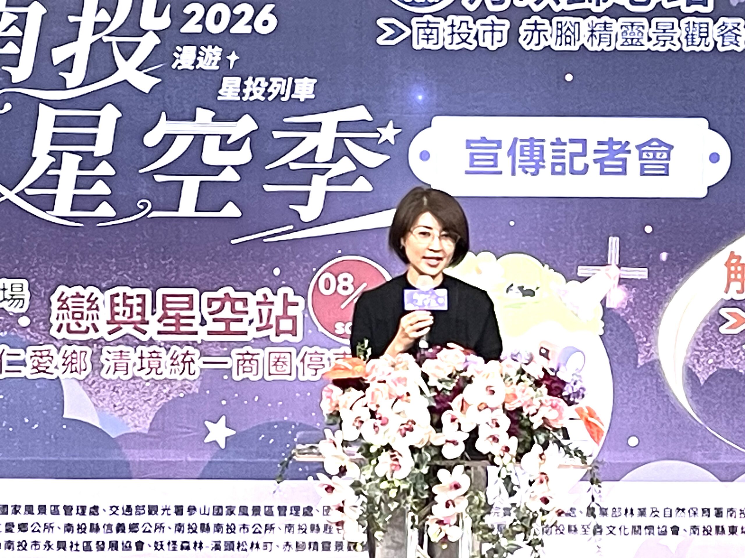 以推廣友善星空生態、觀星主題式旅遊的「南投星空季」系列活動即將開跑,縣府14日上午在1樓大廳舉辦活動宣傳記者會,這次以「星投列車」為概念,將分別在4月25日東埔、6月13日溪頭、8月15日清境、9月5日南投市赤腳精靈景觀餐廳等4個地區推出四場主題日活動,縣長許淑華廣邀全國民眾參加。