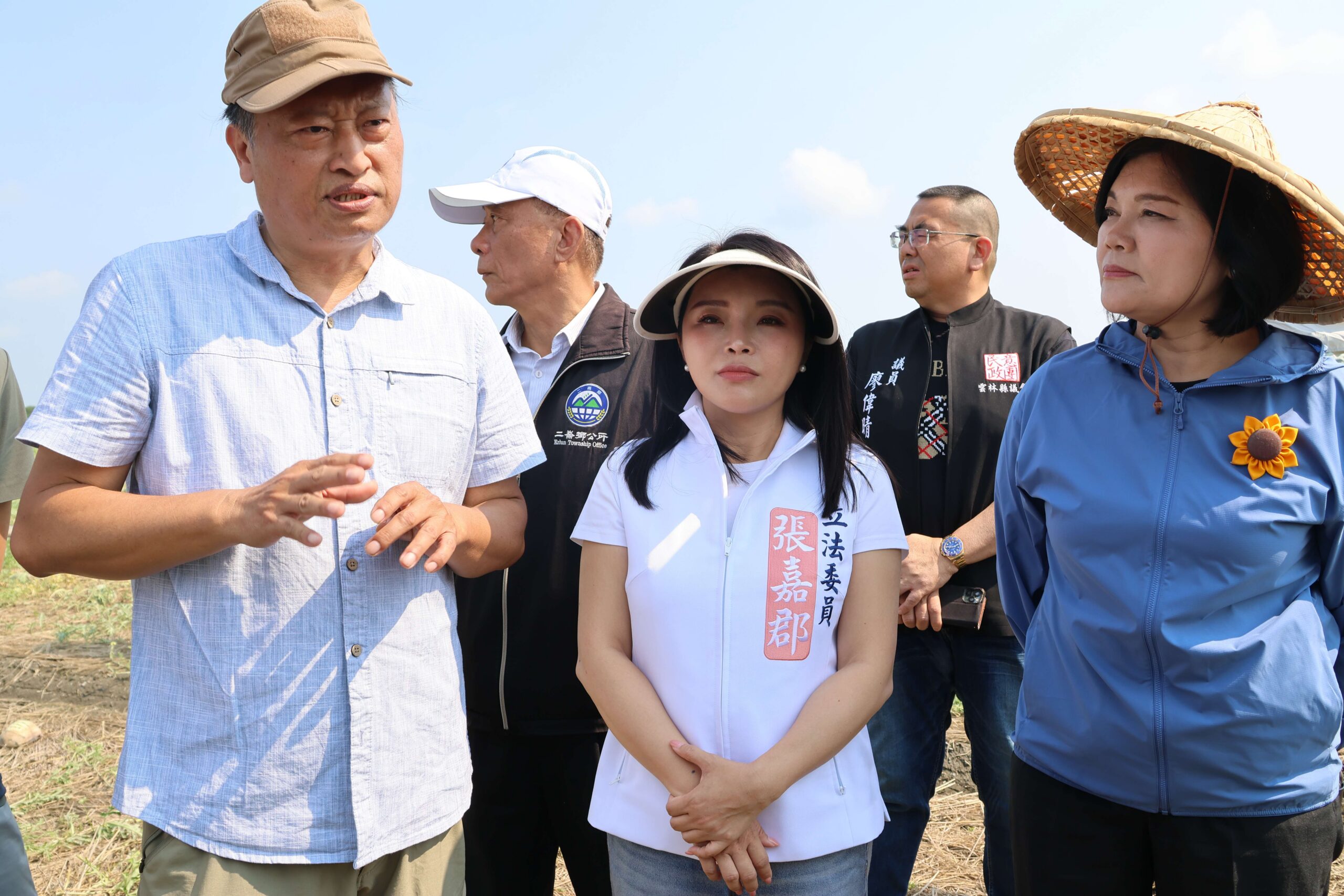 雲林縣二崙地區西瓜及南瓜田受4月上旬豪雨影響,部分田區根系浸水受損,腐爛導致植株死亡,今(14)日上午縣長張麗善率農業團隊,在立委張嘉郡、議員李明哲、廖偉晴陪同下,並邀集農糧署中區分署分署長陳尚仁、台南區農業改良場斗南分場長陳俊仁、二崙鄉長鍾東榮前往二崙田區進行四方會勘。