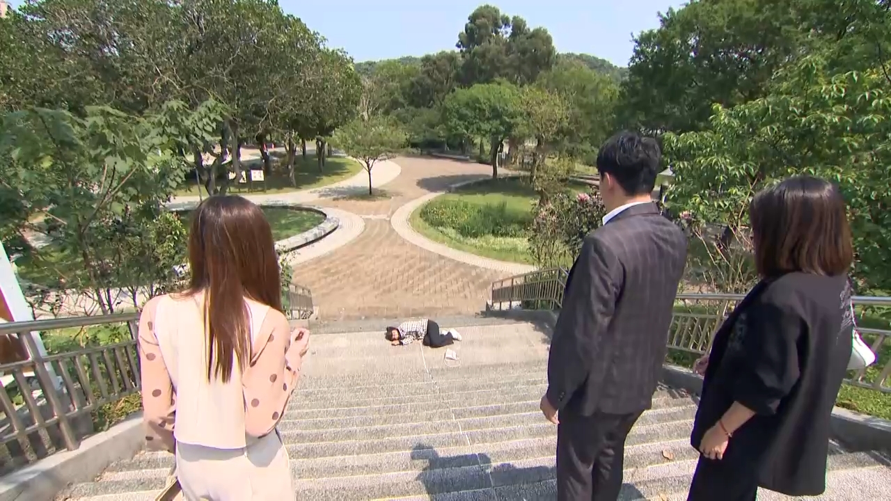 林萱瑜(中)失足墜樓梯 照片提供:三立電視