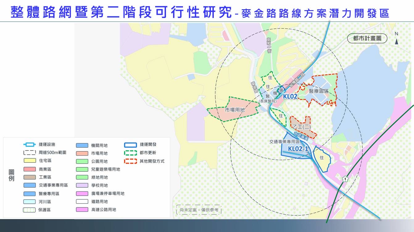 市長謝國樑表示,麥金路沿線有多處連動適合開發的地點或地區(如長庚醫院、安樂區公所、麥金路三巷一帶),可透過捷運帶動人潮與經濟發展,增加收益來補貼建設成本、提高自償能力減輕市府負擔,今年將加速二階可行性研究,讓未來能順利銜接捷運一階工程。