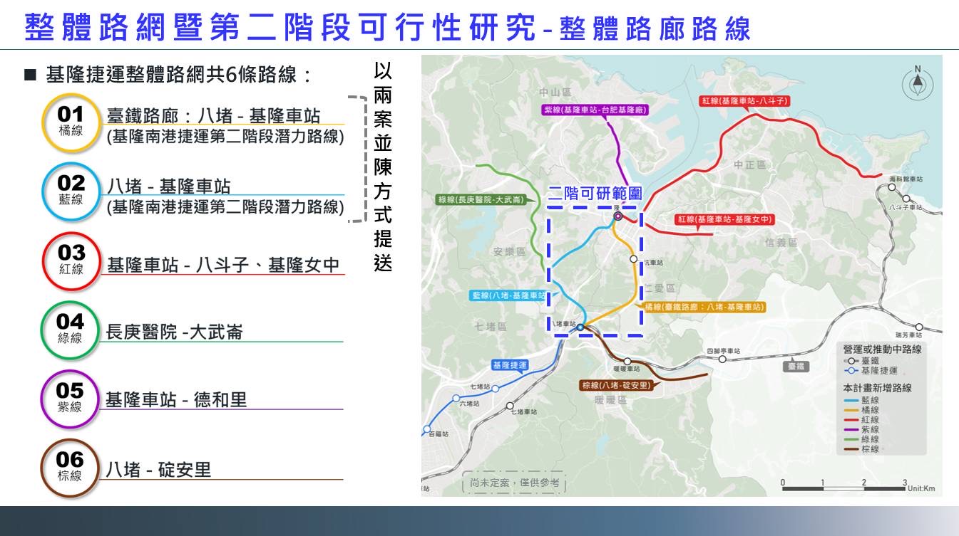 地政處表示,已於今(115)年3月31日針對SB18(五堵)站周邊地主召開說明會,蒐集地方民眾意見。而SB19(百福)站至SB21(七堵)站也預計於4月下旬起,陸續辦理民眾座談會蒐集地方意見;另交通處報告說明基隆捷運第二階段路線,目前正研議麥金路路線與臺鐵路廊路線兩方案,預計今(115)年中將完成期中審查,並於年底前確定八堵至基隆路線方案,完成可行性研究報告。