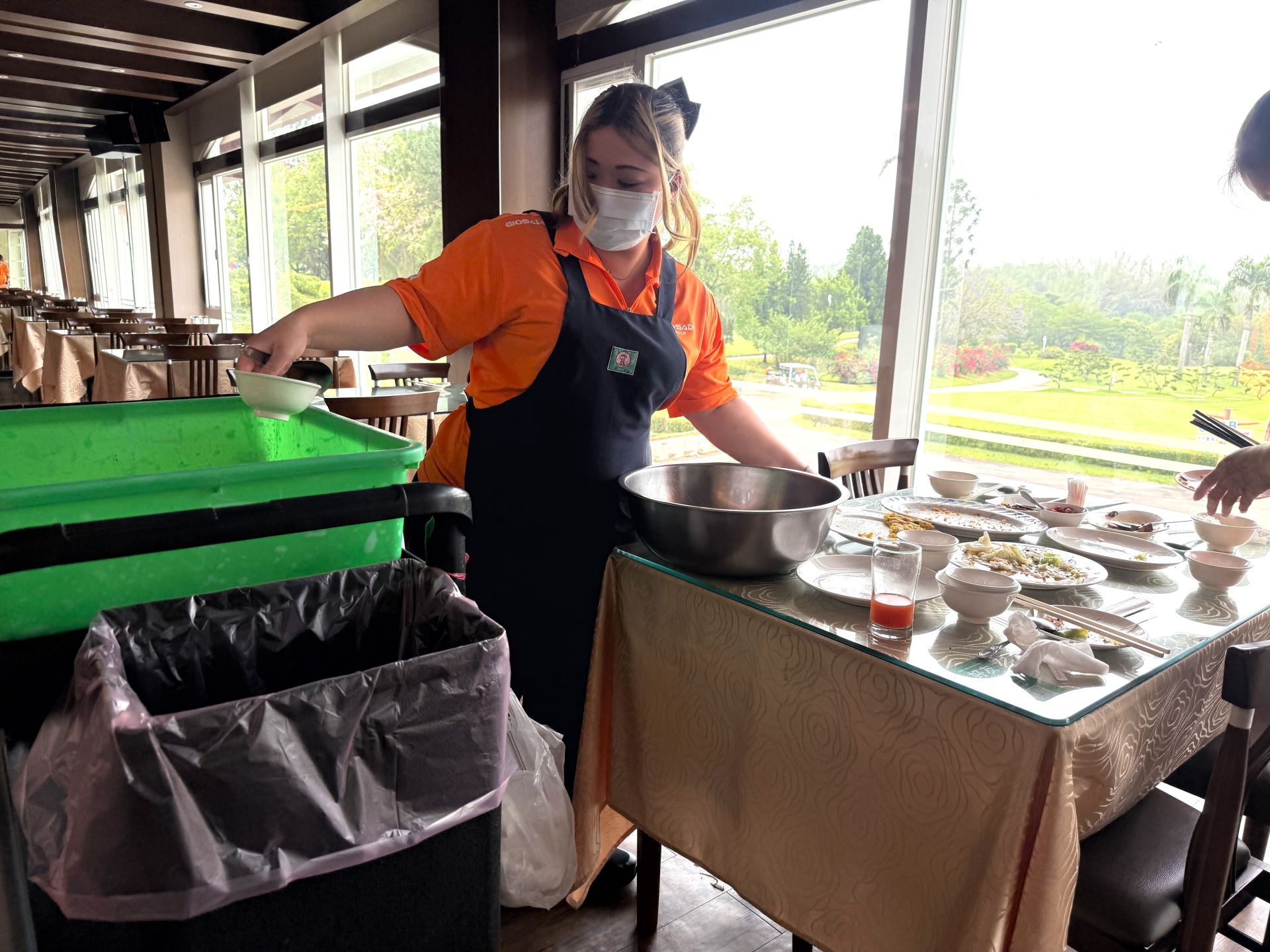 ▲秋萍目前於大內區南寶鄉村高爾夫球場擔任餐廳外場服務員,負責環境整理及送餐服務。(圖/雲嘉南分署提供)