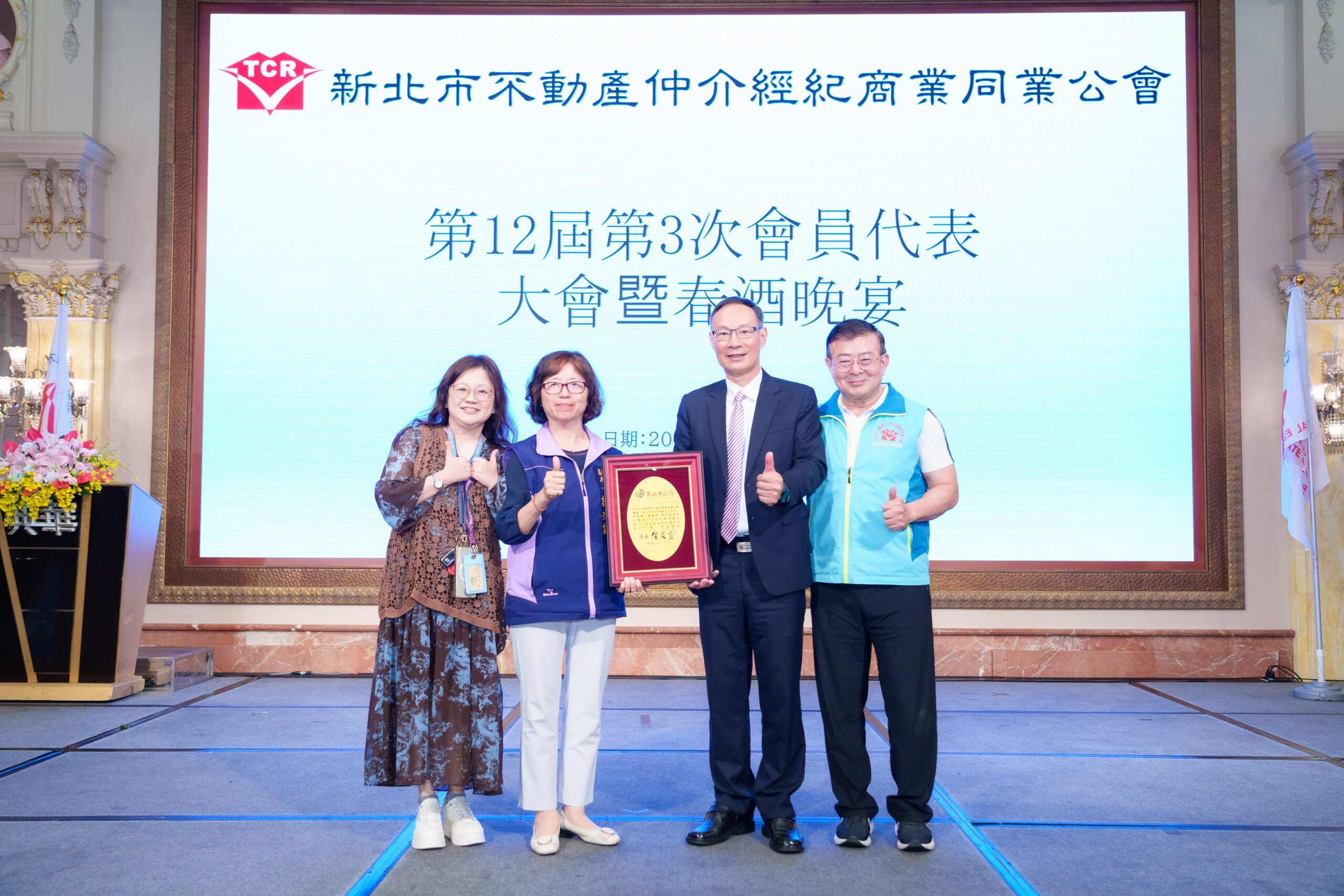 新北市不動產仲介經紀商業同業公會長年關心社會公益,日前在新莊典華餐廳召開第12屆第3次會員代表大會時,響應新北市好日子愛心大平台,由理事長林平川代表捐贈10萬元,做為新北市家外安置兒少支持服務計畫,社會局副局長許秀能到場代表受贈,並回贈侯友宜市長的感謝牌,地政局長汪禮國和經發局長盛筱蓉亦到場致意。
