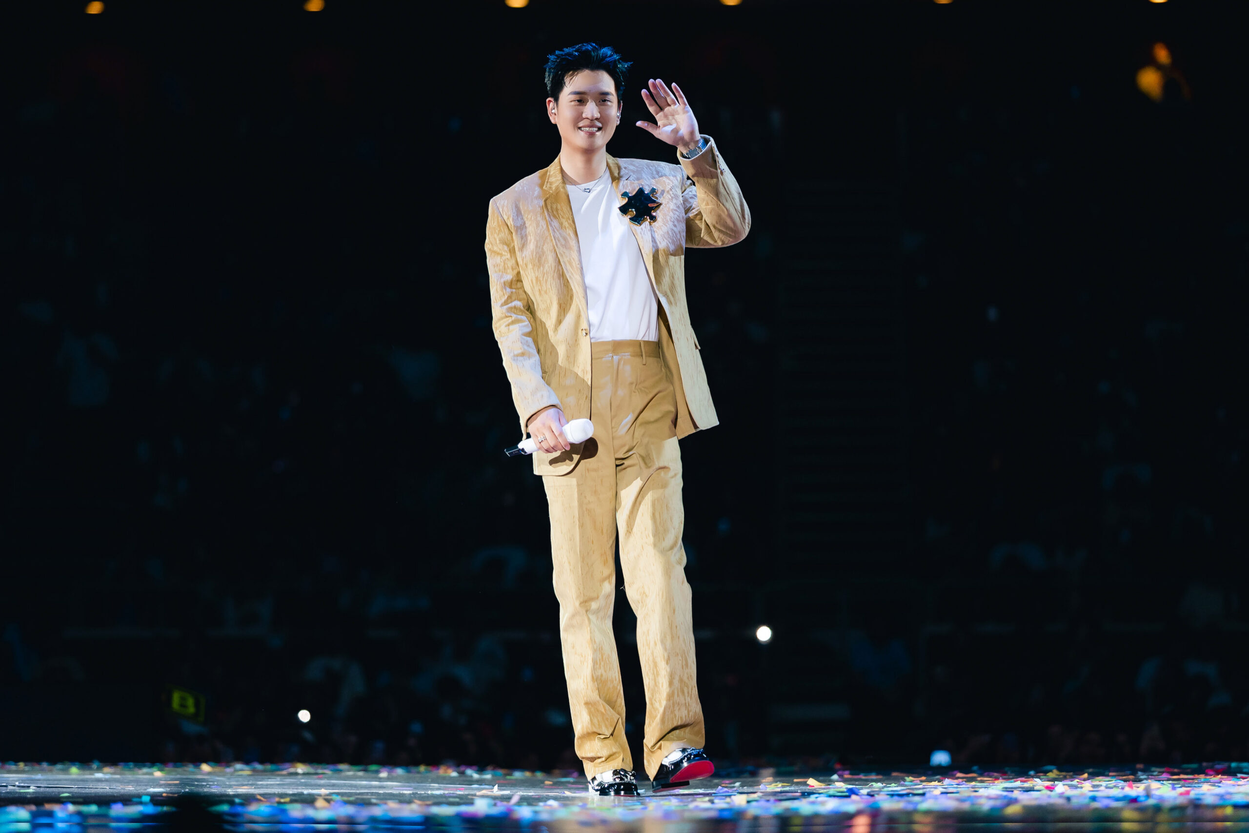 不只如此,在安可橋段時,他一上台故意開玩笑說:「哎呀,我的褲子穿反了!」隨後才揭曉其實這件牛仔褲的設計巧思,正反面做得一模一樣,讓小興星又大聲疾呼要他脫衣,他從善如流把西裝外套褪去,讓大家更能一眼目睹這件褲子的奧秘,幽默互動讓全場笑聲與尖叫聲不斷,小興星樂到不行!