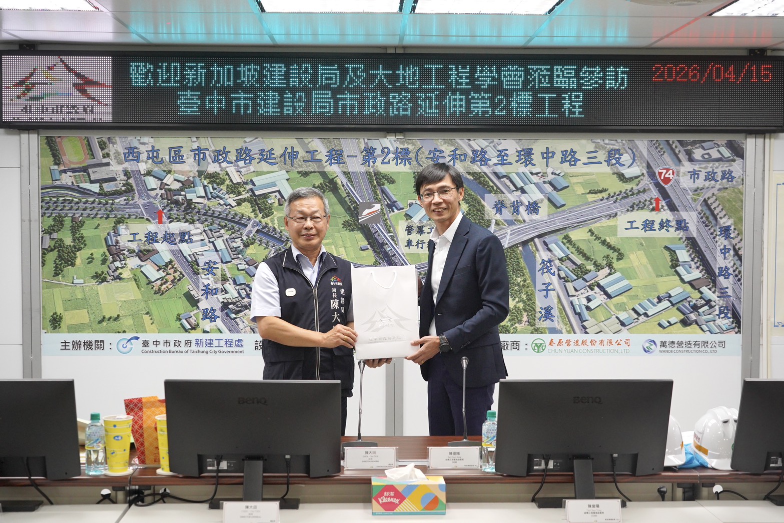 陳署長表示,此次率團參訪市政路延伸工程,對於工程在複雜施工條件下仍能穩健推進印象深刻,展現高度專業技術與施工管理能力,具備重要參考價值。透過交流,不僅深入了解工程執行經驗,也關注台中在環境保護與綠色管理方面的作法,與新加坡推動永續發展理念相互契合,期盼未來持續深化合作交流,並感謝台中市政府熱情接待。
